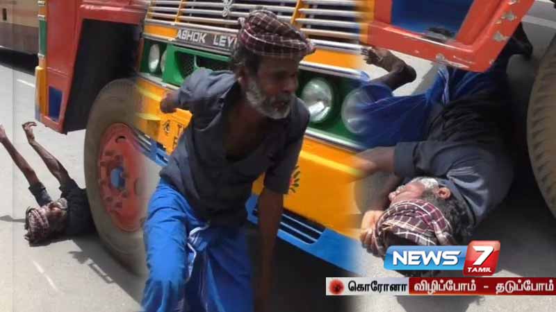 பின்னர், ‘எனக்கு சரக்கு பத்தல, இன்னும் வேணும்’ என்று கூறி கத்திக்கொண்டிருந்தார். அப்போது வேகமாக வந்த லாரி ஒன்றை நிறுத்திய போதை ஆசாமி, டயருக்குள் படுத்துக் கொண்டு ’என்னை ஏற்றிக் கொல்லு’ என்று கத்தினார். அவர் லாரியில் அடிபட்டுவிட்டார் என்று அங்கிருந்தவர்கள் நினைத்து அக்கம் பக்கத்தினர் பரிதவித்தனர்.