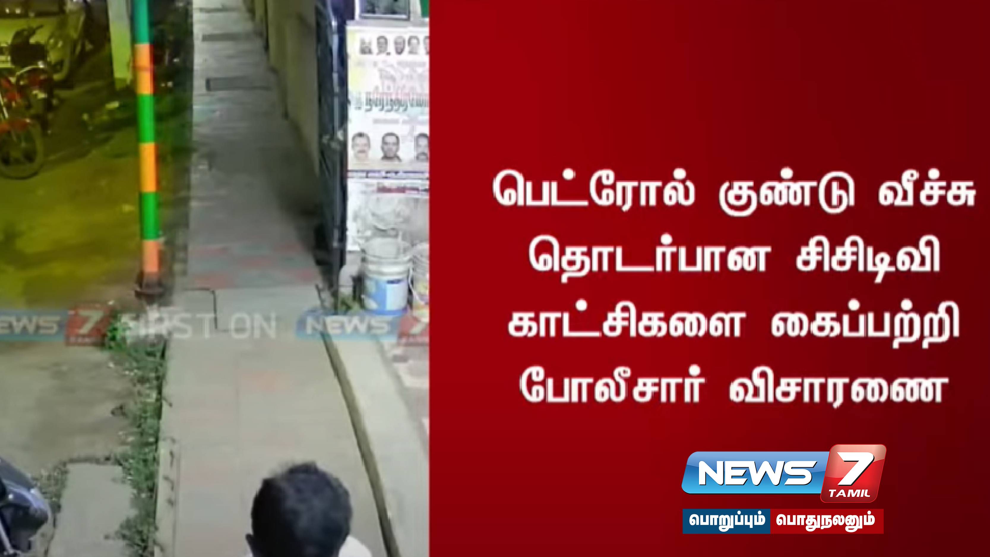 காவலர் அருகில் உள்ள காவல் நிலையத்திற்கு இத்தகவலை தெரிவித்ததை அடுத்து, அந்தப் பகுதி காவல் துறை அதிகாரிகள் விரைந்தனர். அந்தப் பகுதியில் வீசப்பட்டிருந்த பெட்ரோல் குண்டை ஆய்வு செய்தனர். மேலும், அந்தப் பகுதியில் இருந்த சிசிடிவி கேமரா காட்சிகளை வைத்து போலீஸார் ஆய்வு செய்து விசாரணை மேற்கொண்டு வருகின்றனர்.