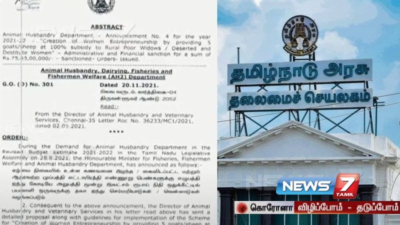 இது தொடர்பாக தமிழ்நாடு அரசு வெளியிட்டுள்ள அரசாணையில், ஆதரவற்ற பெண்களை தொழில்முனைவோராக மாற்றும் திட்டத்திற்கு நிதி ஒதுக்கிடு செய்யப்பட்டுள்ளதாக குறிப்பிடப்பட்டுள்ளது. ஏழ்மை நிலையில் உள்ள கணவனை இழந்த, கைவிடப்பட்ட, ஆதரவற்ற பெண்களுக்கு செம்மறியாடுகள், வெள்ளாடுகள் வழங்க 75 கோடியே 63 லட்சம் ரூபாய் ஒதுக்கீடு செய்துள்ளதாக தெரிவிக்கப்பட்டுள்ளது.