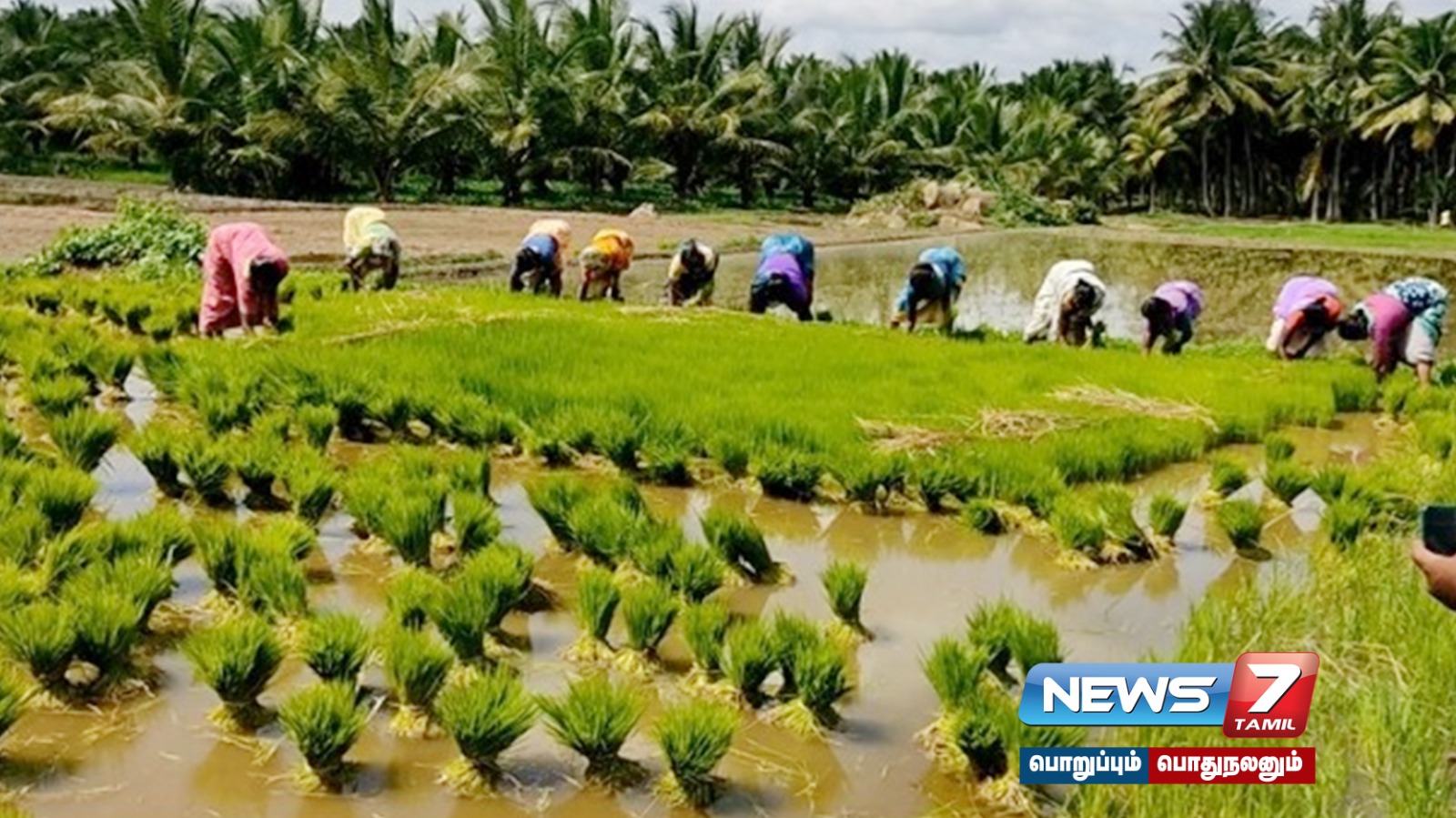 செடி தளை இலைகளை உரமாக இட்டு, நெல் நாற்று நடவு செய்யும்