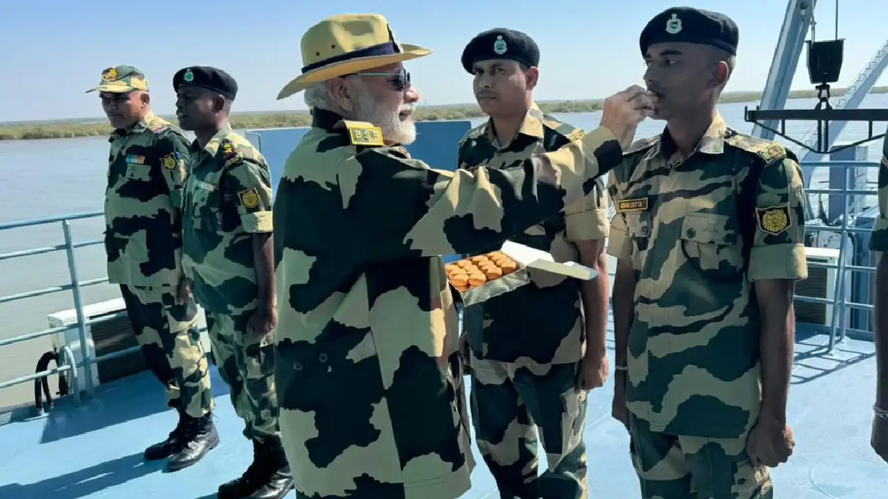 பிரதமர் நரேந்திர மோடி, குஜராத்தில் எல்லைப் பாதுகாப்பு வீரர்களுடன் தீபாவளி பண்டிகையை கொண்டாடினார்.