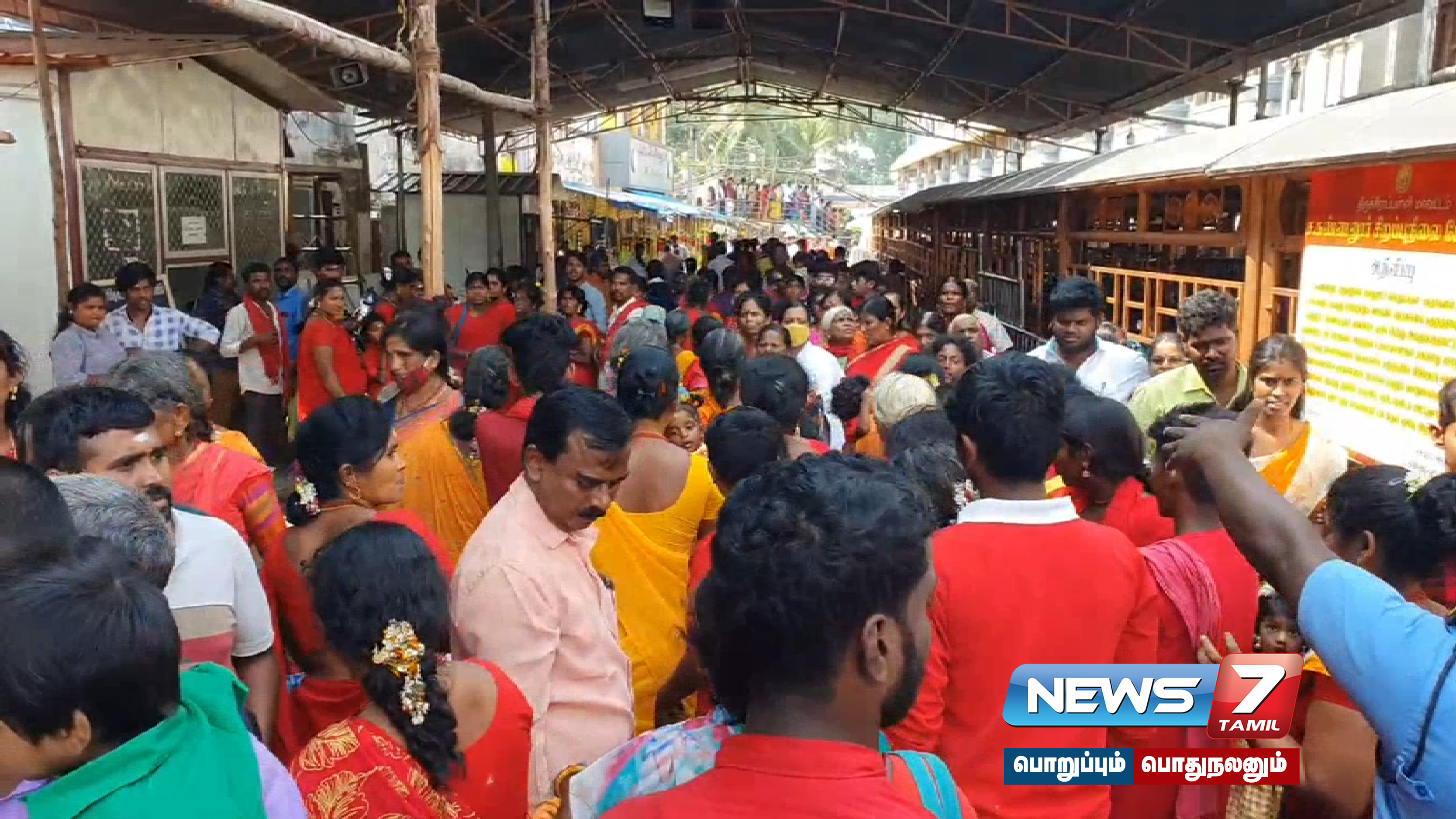 திருச்சி சமயபுரம் கோவிலில் கூட்ட நெரிசலைப் பயன்படுத்தி பக்தர்களிடம் நகையை நூதனமாக திருடிய பெண்ணைக் காவல்துறையினர் கையும் களவுமாகப் பிடித்துக் கைது செய்தனர்.