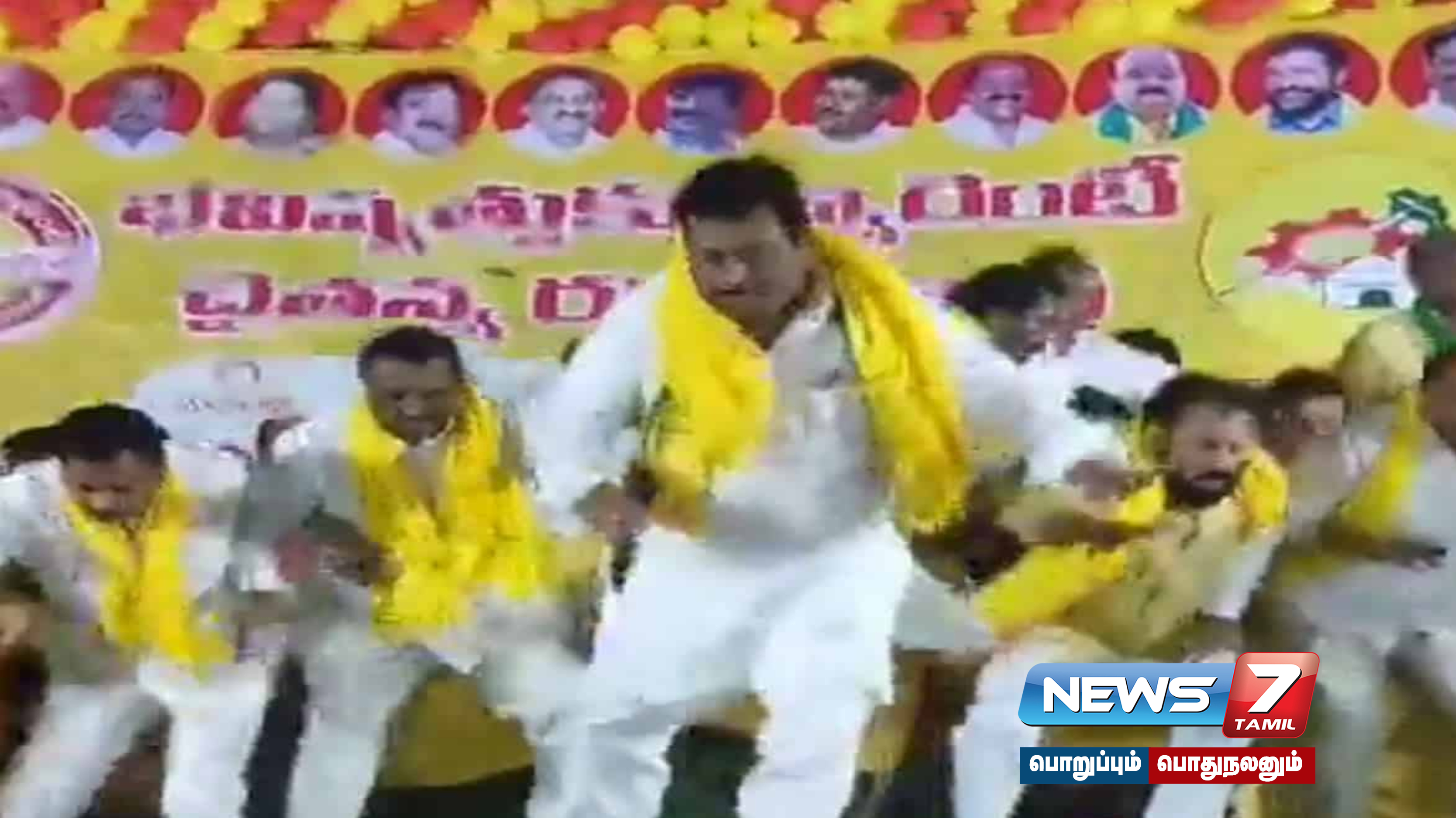 ஆந்திராவில் தெலுங்கு தேச கட்சி பொதுக்கூட்டத்தில் தலைவர்கள் பேசிக் கொண்டிருந்த போது மேடை சரிந்ததால் பரபரப்பு நிலவியது.