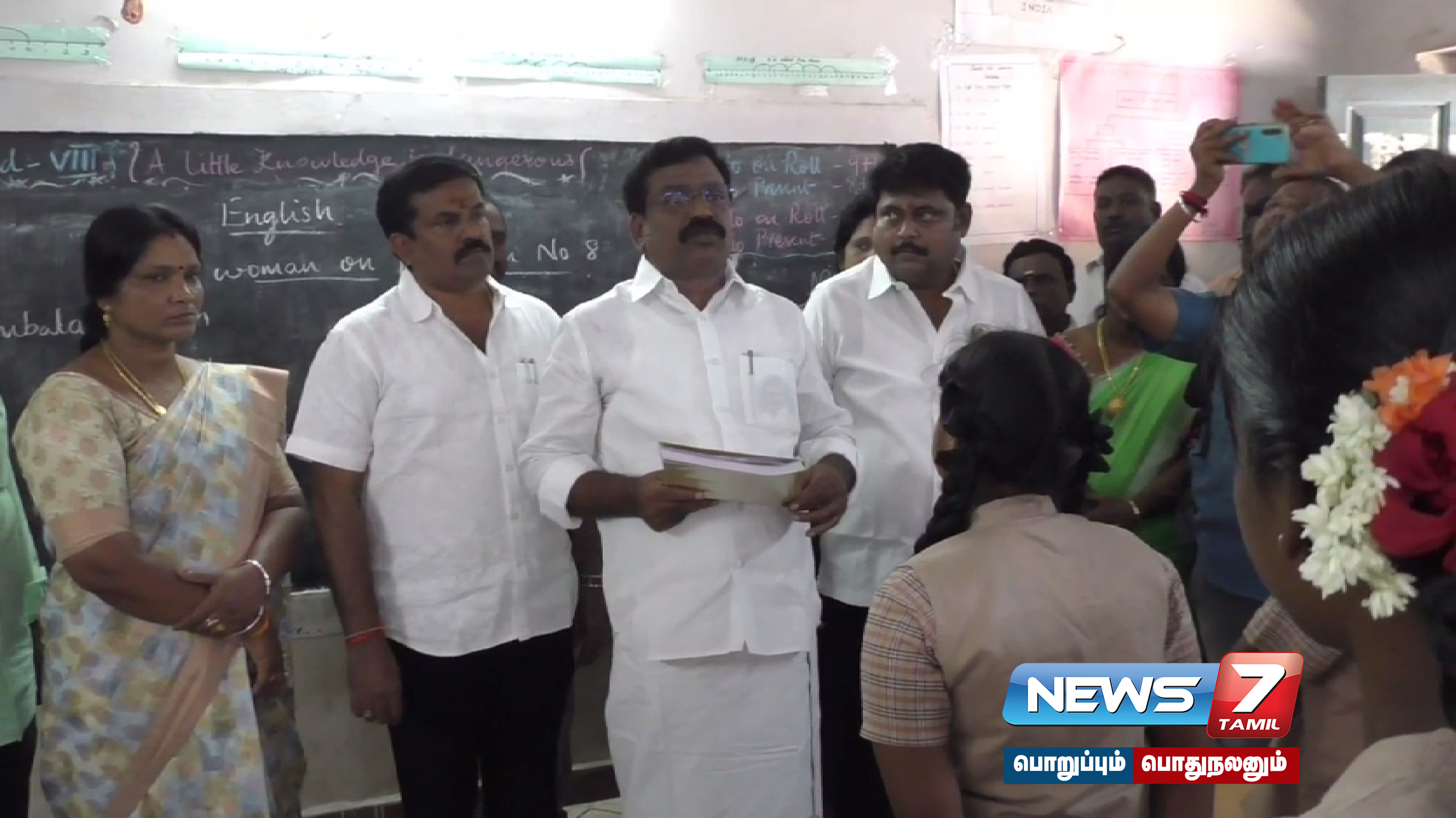 அரசு பள்ளியை ஆய்வு செய்ய சென்ற பூந்தமல்லி எம்.எல்.ஏ மாணவிகளுக்கு ஆங்கிலத்தில் பாடம் எடுத்தார்.