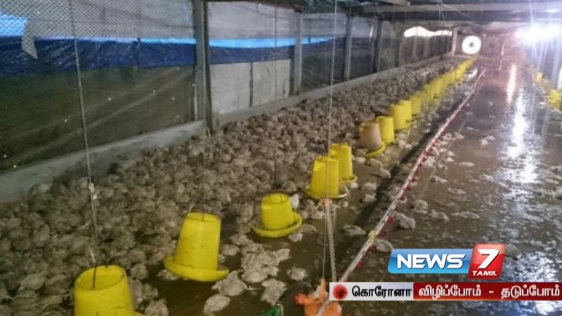 விழுப்புரம் மாவட்டத்தில் பெய்த கனமழையால் மலட்டாற்றில் வெள்ளப்பெருக்கு ஏற்பட்டது. இதனால் அகரம், நரசிங்கபுரம், சின்னமடம், பரசுரெட்டிப்பாளையம், மேட்டுப்பாளையம் உள்ளிட்ட பல்வேறு கிராமங்களில் வெள்ளநீர் சூழ்ந்ததால் மக்கள் பாதிப்புக்கு உள்ளாகினர். இந்நிலையில் சின்னமடம், நரசிங்கபுரம் பகுதியில் பெருமாள், வெங்கடபதி, ராமதாஸ் ஆகியோருக்கு சொந்தமான கோழிப்பண்ணையில் வெள்ளம் புகுந்தது. இதனால் பண்ணையில் இருந்த 6 ஆயிரத்திற்கும் அதிகமான கோழிகள் வெள்ள நீரில் மூழ்கி உயிரிழந்தன. இதனால் பாதிக்கப்பட்ட கோழிப்பண்ணை உரிமையாளர்கள், அரசு தங்களுக்கு உரிய இழப்பீடு வழங்க வேண்டும் எனக் கோரிக்கை விடுத்துள்ளனர்.