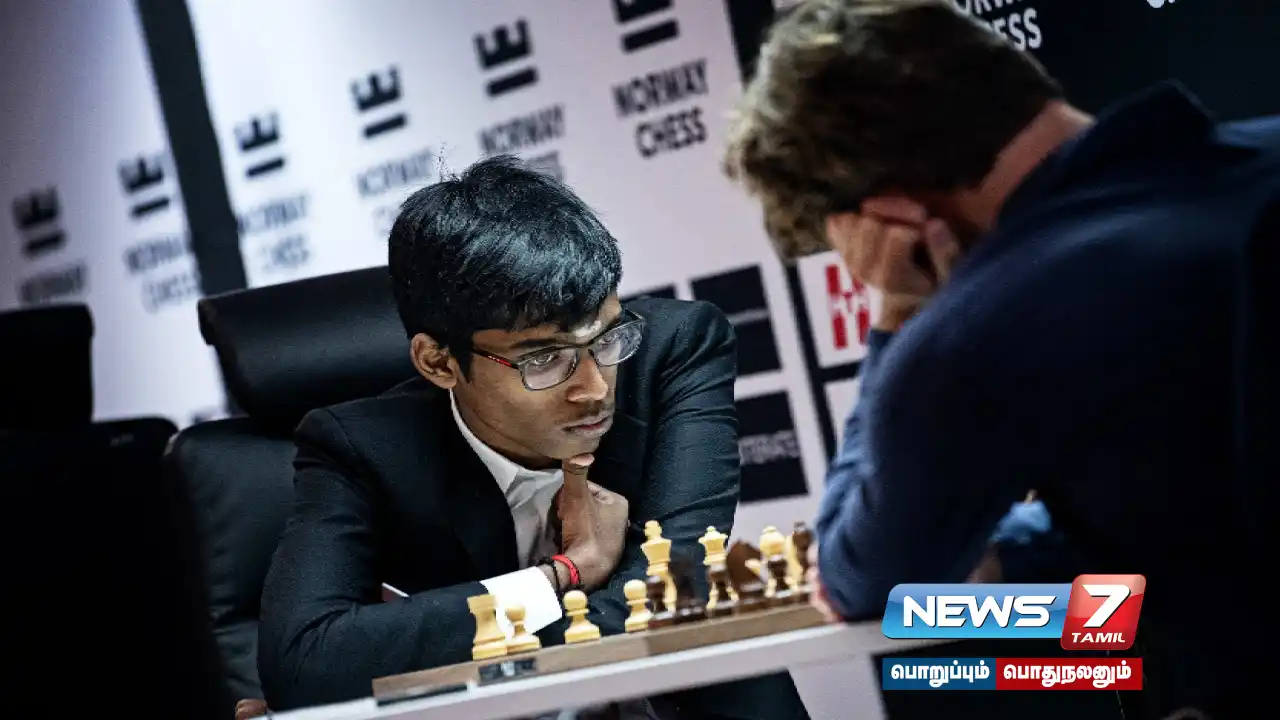 நார்வே செஸ்2024 தொடரில் உலகின் நம்பர் ஒன் செஸ் வீரர் மேக்னஸ் கார்ல்சனை அவரது சொந்த மண்ணில் வீழ்த்தினார் தமிழ்நாடு செஸ் கிராண்ட் மாஸ்டர் பிரக்ஞானந்தா.