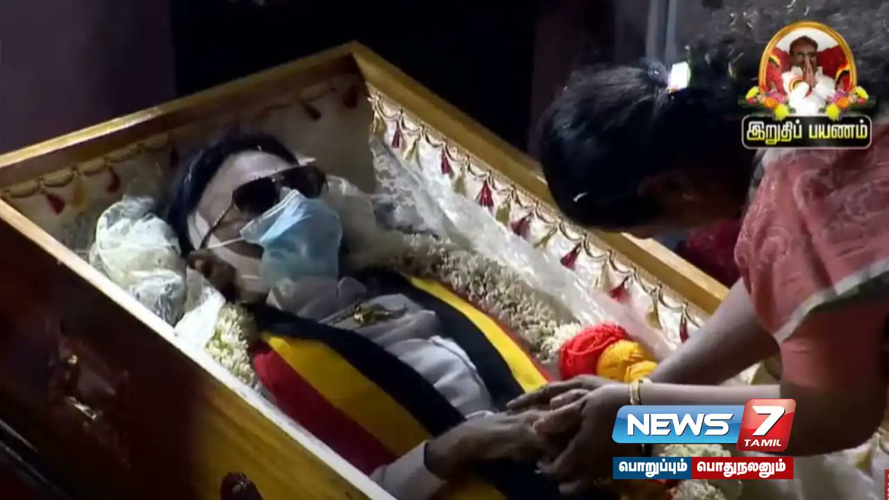 இந்நிலையில், மறைந்த தேமுதிக தலைவர் விஜயகாந்தின் உடலுக்கு கடைசியாக ஒருமுறை அஞ்சலி செலுத்துவதற்காக, சென்னை கோயம்பேடு தேமுதிக அலுவலகம் அமைந்துள்ள பகுதியில் மக்கள் கூட்டம் அலைமோதுகிறது. விஜயகாந்த் இறுதி ஊர்வலம் கோயம்பேட்டில் உள்ள தேமுதிக அலுவலகத்திற்கு மாலை 6 மணி அளவில் வந்தடைந்தது. அங்கு விஜயகாந்த் உடலுக்கு இறுதிச் சடங்குகள் நடைபெற்றன. பின்னர் புரட்சி கலைஞர் கேப்டன் விஜயகாந்த் என பெயர் பொறிக்கப்பட்ட சந்தனப்பேழையில் விஜயகாந்தின் உடல் வைக்கப்பட்டது.
