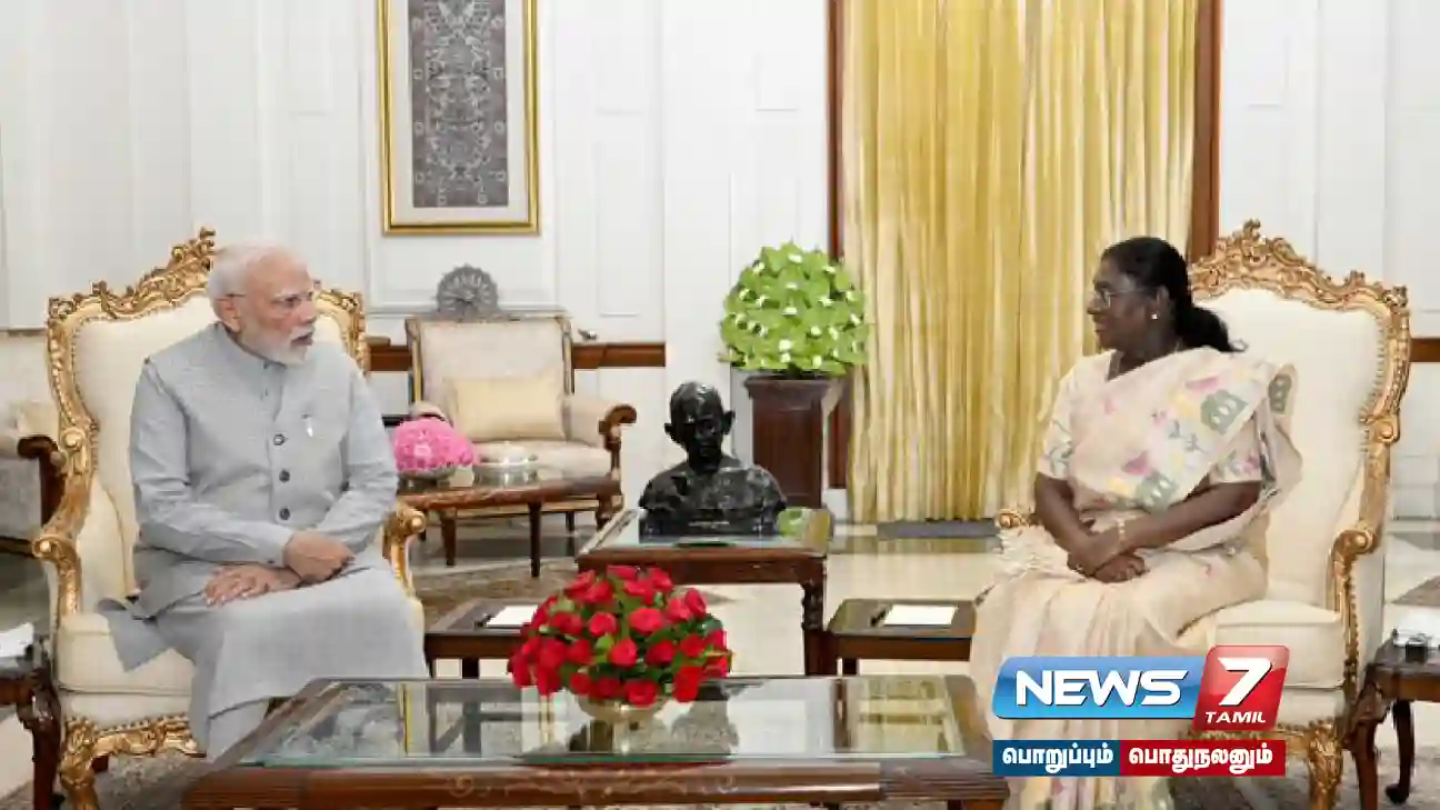 இந்த நிலையில் இன்று , குடியரசுத் தலைவர் மாளிகையில் நடைபெற்ற பிரதமர் மோடி குடியரசுத் தலைவர் திரௌபதி முர்முவை சந்தித்துள்ளார்.