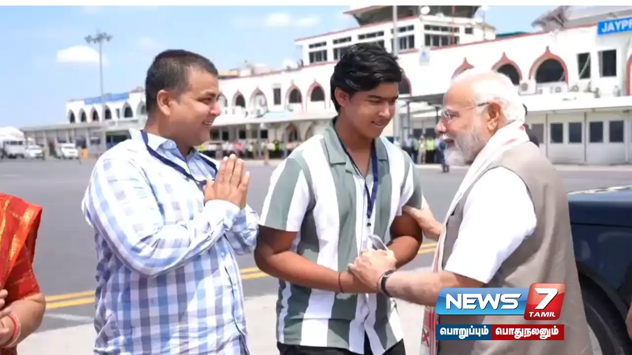 பாட்னா விமான நிலையத்தில் பிரதமர் நரேந்திர மோடியை இளம் கிரிக்கெட் வீரர் வைபவ் சூரியவன்சி மற்றும் அவரது குடும்பத்தினர் சந்தித்துள்ளனர். நடைபெற்று வரும் 18வது ஐ.பி.எல் தொடரில் கடந்த மே 1ம் தேதி மும்பை-ராஜஸ்தான் அணிகள் இடையே நடைபெற்ற போட்டியில், களம் இறங்கிய ராஜஸ்தான் ராயல்ஸ் அணியின் இளம் வீரர் வைபவ் சூரியவன்சி, 35 பந்துகளில் 100 ரன்கள் அடித்து சதம் படைத்தார்.