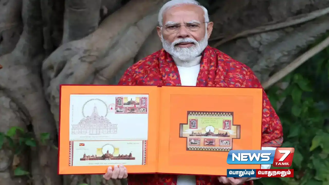 அயோத்தி ராமர் கோயில் பிரதிஷ்டை விழாவை முன்னிட்டு, ராமர் கோயில் நினைவு அஞ்சல் தலைகளையும், ராமர் பற்றிய அஞ்சல் உறைகள் அடங்கிய புத்தகத்தையும் பிரதமர் மோடி வெளியிட்டார்.
