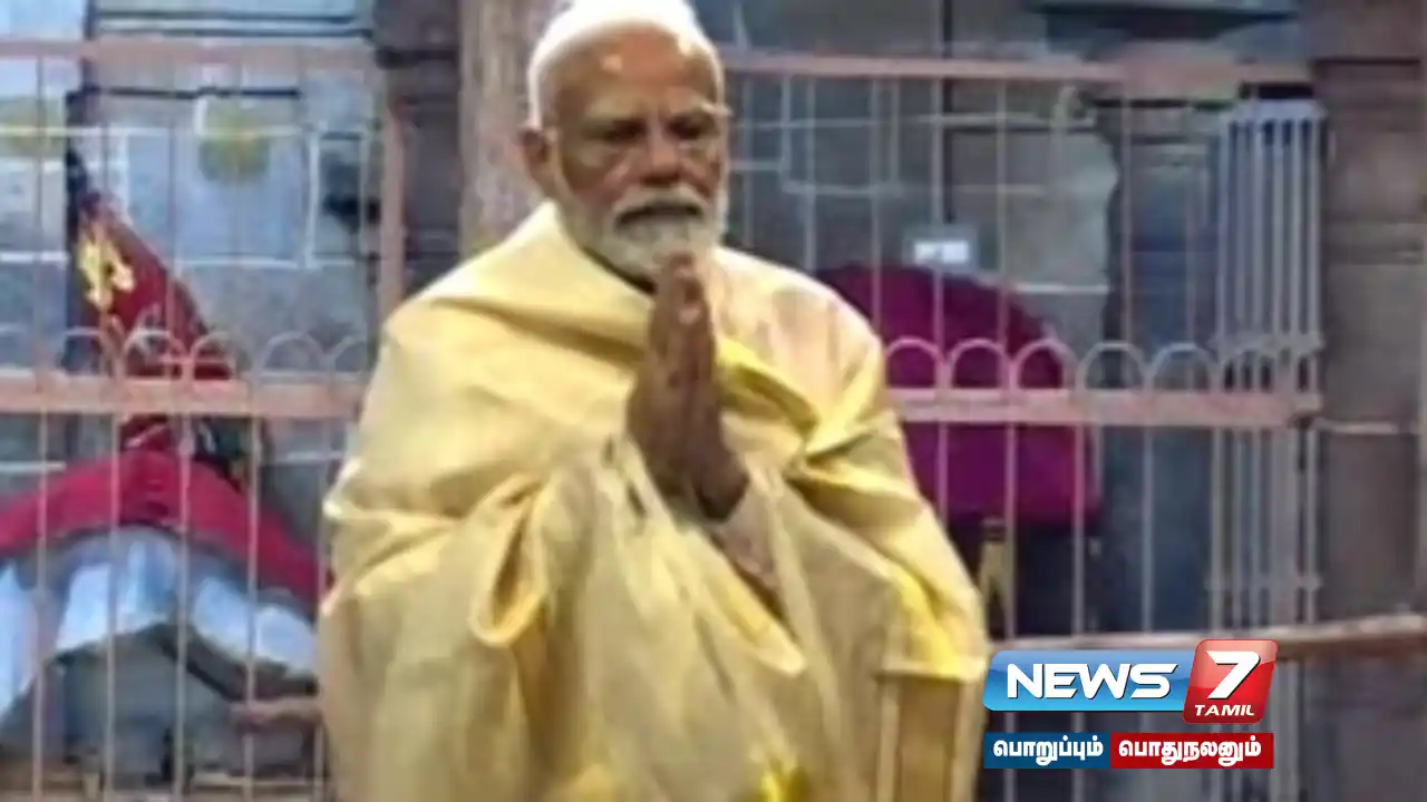 பிரதமர் மோடி, தமிழர்களின் பாரமரிய வேட்டி சட்டை அணிந்தபடி ரங்கநாதர் கோயிலில் சாமி தரிசனம் செய்தார்.