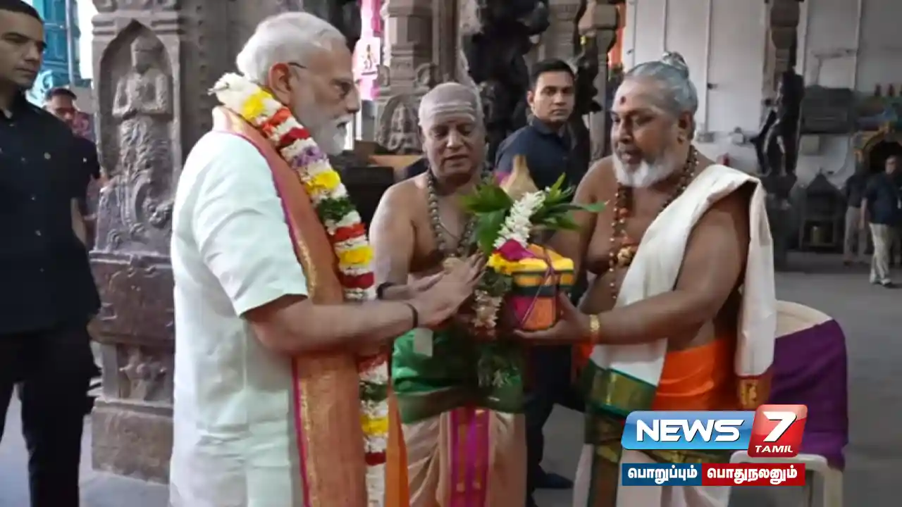 தொடர்ந்து அங்கிருந்து புறப்பட்ட பிரதமர் மோடி திருப்பரங்குன்றம் மலையில் அமைந்துள்ள முருகன் கோயிலில் சாமி தரிசனம் செய்தார். கோயில் சார்பில் அவருக்கு சிவப்புக் கம்பள வரவேற்பு அளிக்கப்பட்டது.