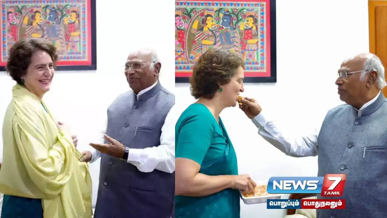 வயநாட்டில் வெற்றி பெற்ற காங்கிரஸ் பொதுச்செயலாளர் பிரியங்கா காந்தி காங்கிரஸ் தலைவர் மல்லிகாா்ஜுன கார்கேவை சந்தித்து வாழ்த்து பெற்றார்.
