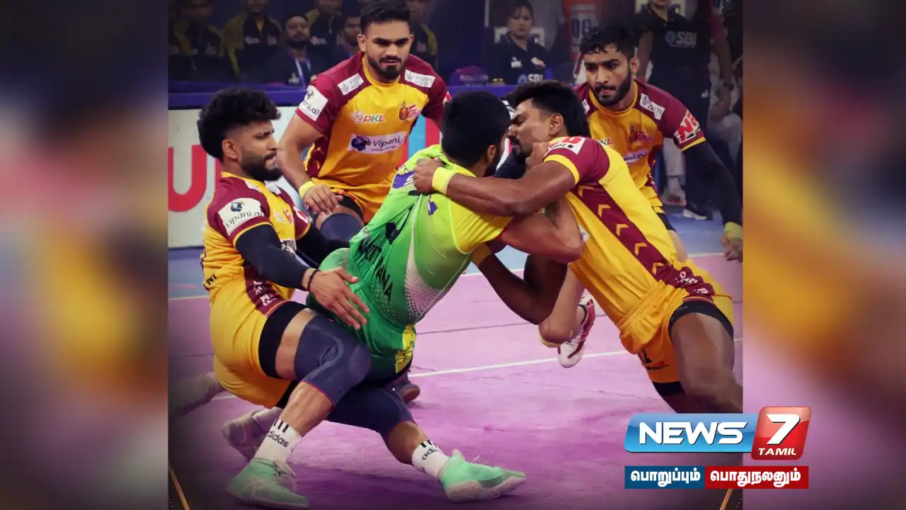 தற்போது பிளே ஆப் சுற்று ஆட்டங்கள் நடந்து வருகிறது. இதில் நேற்று முன்தினம் நடைபெற்ற முதலாவது தகுதி சுற்றில் புனேரி பால்டனை வீழ்த்தி தபாங் டெல்லி இறுதிப்போட்டிக்கு முன்னேறியது. தோல்வியடைந்த புனேரி பால்டன் அணி 2வது தகுதி சுற்றுக்கு தகுதி பெற்றுள்ளது. இந்த நிலையில், இந்த தொடரில் நேற்று நடைபெற்ற 3வது வெளியேற்றுதல் சுற்று ஆட்டத்தில் தெலுங்கு டைட்டன்ஸ் – பாட்னா பைரட்ஸ் அணிகள் மோதின.