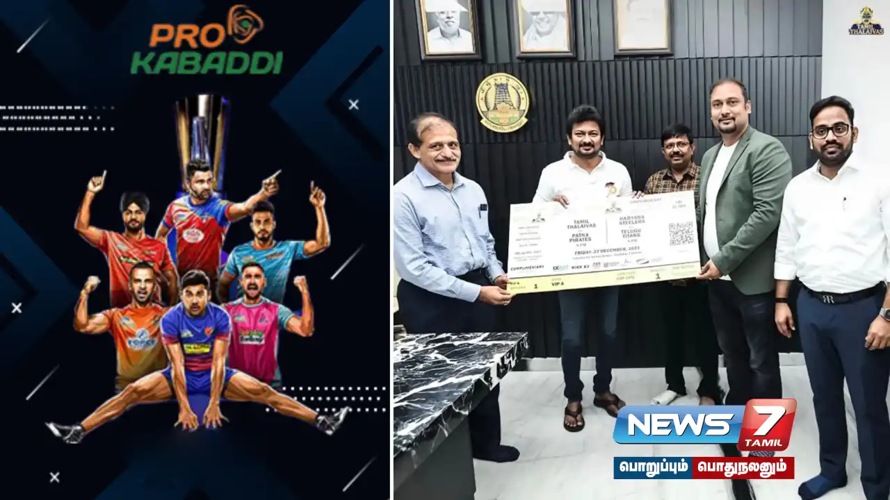 சென்னையில் வரும் 22 ஆம் தேதி முதல் 27 ஆம் தேதி வரை இத்தொடரின் லீக் போட்டிகள் நடைபெறவுள்ளது. இதனை முன்னிட்டு, தமிழ்நாடு விளையாட்டு மேம்பாட்டுத்துறை அமைச்சர் உதயநிதி ஸ்டாலினை நேரில் சந்தித்து, போட்டிக்கான முதல் டிக்கெட்டை தமிழ் தலைவாஸ் அணி நிர்வாகம் வழங்கியது.
