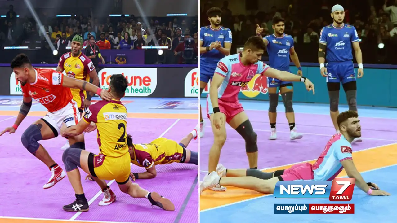 இந்த தொடரின் முதற்கட்ட லீக் ஆட்டங்கள் ஹைதராபாத்தில் நடந்து முடிந்தன. இதனையடுத்து தொடரின் 2வது கட்ட லீக் ஆட்டங்கள் நொய்டாவில் நடைபெற்று வருகின்றன. இந்த நிலையில், இந்த தொடரில் நேற்று (நவ.24) நடைபெற்ற முதல் ஆட்டத்தில் தெலுங்கு டைட்டன்ஸ் – குஜராத் ஜெயன்ட்ஸ் அணிகள் மோதின. தொடக்கம் முதலே இரு அணிகளும் மாறி மாறி பாயிண்ட்ஸ்களை அள்ளி குவித்தன.