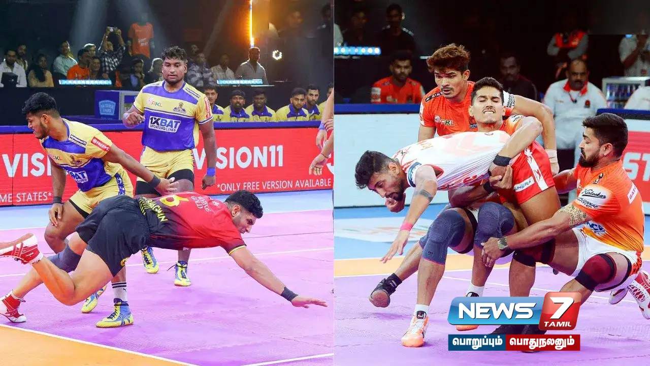இந்த தொடரில் நேற்று (நவ.4) நடைபெற்ற முதல் லீக் ஆட்டத்தில் புனேரி பால்டன் – குஜராத் ஜெயண்ட்ஸ் அணிகள் மோதுக்கொண்டன. இந்த போட்டியில் ஆரம்பம் முதலே அபாரமான ஆட்டத்தை வெளிப்படுத்திய புனேரி பால்டன் 49-30 என்ற புள்ளிக்கணக்கில் குஜராத்தை வீழ்த்தி வெற்றி பெற்றது. இதனையடுத்து, 9 மணிக்கு நடைபெற்ற 2வது லீக் ஆட்டத்தில் தமிழ் தலைவாஸ் – பெங்களூரு புல்ஸ் அணிகள் மோதின.