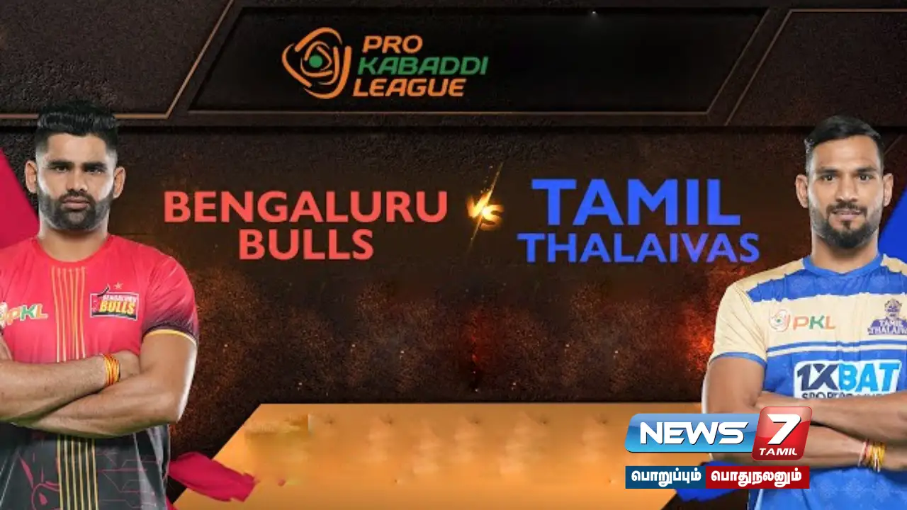 இதனையடுத்து, 9 மணியளவில் நடைபெறும் ஆட்டத்தில் பாயிண்ட்ஸ் டேபிளில் 2வது இடத்தில் உள்ள தமிழ் தலைவாஸ், கடைசி (12வது) இடத்தில் உள்ள பெங்களூரு புல்ஸ்