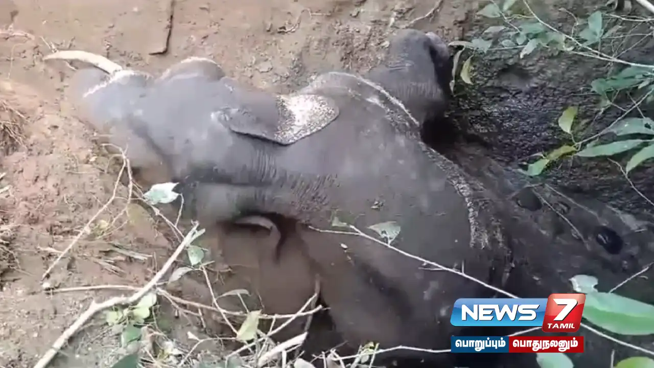 ஏற்படுத்தப்பட்ட குழியின் வழியாக காட்டு யானை வெளியேறி அருகில் உள்ள