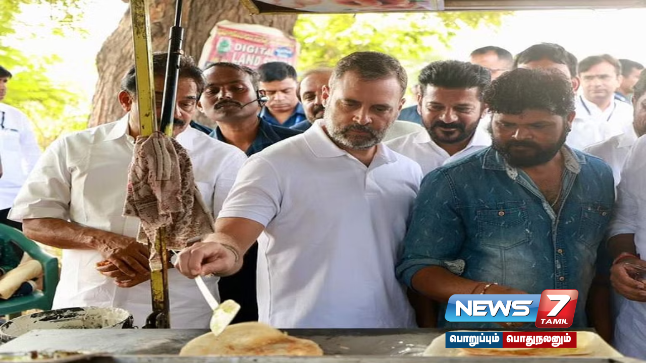 இந்த நிலையில், இன்று ஊடகங்களில் வெளியான விடியோவில், சாலையில் தேர்தல் பிரசாரம் மேற்கொண்டிருந்த ராகுல் காந்தி, அங்கிருந்த சாலையோர உணவகத்துக்குள் நுழைந்தார். அங்கு ஏற்கனவே சமையல்காரர் தோசை சுட்டுக்கொண்டிருந்ததைப் பார்த்த ராகுல் காந்தி அவருடன் சேர்ந்து தோசை சுடத் தொடங்கினார்.