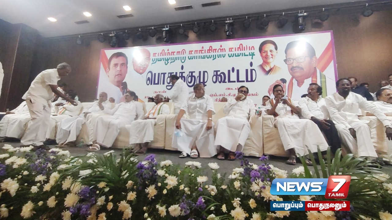 மேலும் அனைத்து காங்கிரஸ் எம்.எல்.ஏ.க்கள், எம்.பி.க்கள், சென்னை மாவட்ட தலைவர்கள் உள்பட 76 மாவட்ட தலைவர்களும் பொதுக்குழு கூட்டத்தில் பங்கேற்றனர். இந்த கூட்டத்தில் அகில இந்திய காங்கிரஸ் தலைவராக ராகுல்காந்தியை நியமிக்க வலியுறுத்தி ஒருமனதாக தீர்மானம் நிறைவேற்றப்பட்டது.
