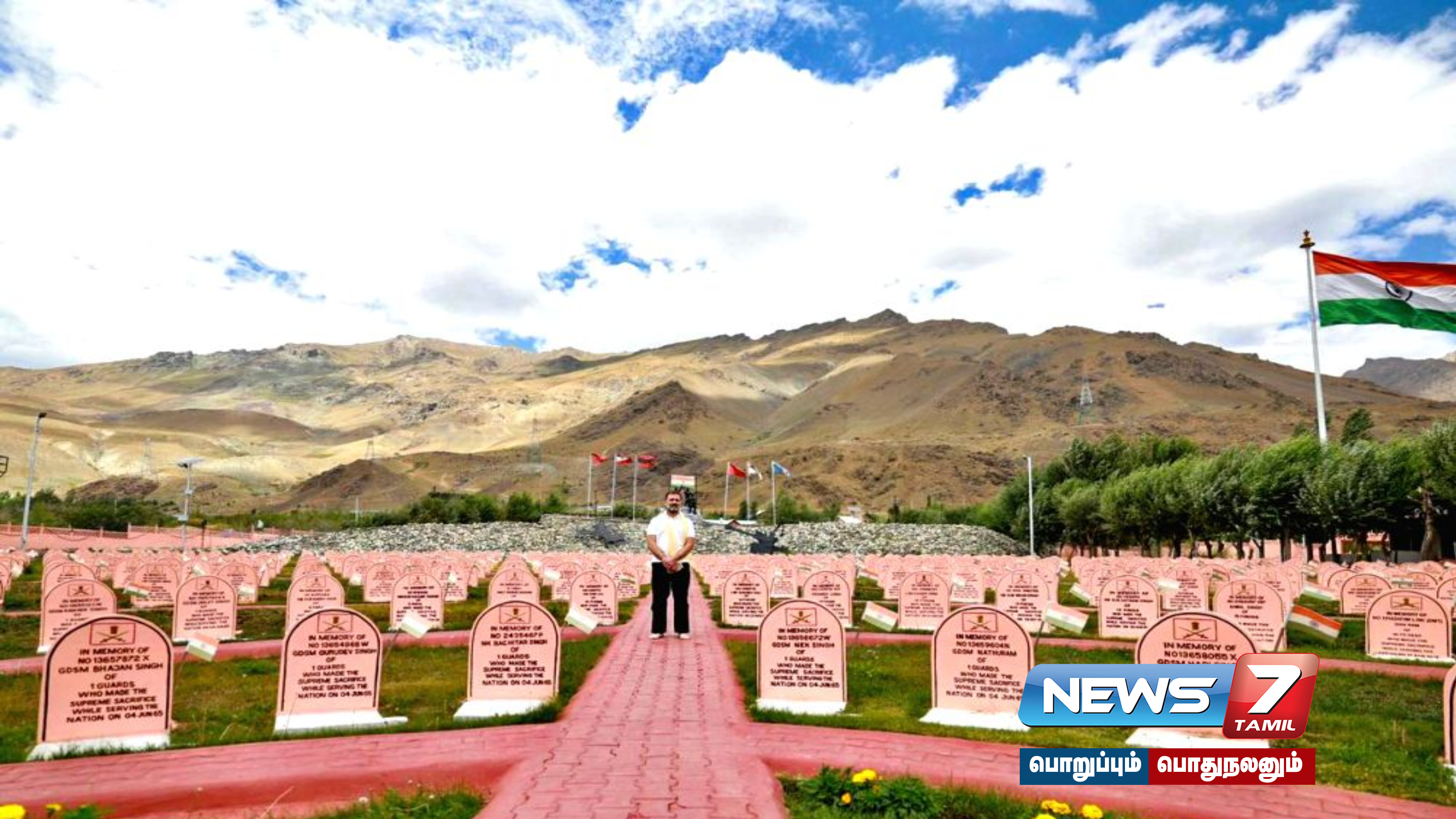 காங்கிரஸ் எம்பி ராகுல் காந்தி தனது லடாக் பயணத்தின் போது திராஸில் உள்ள கார்கில் போர் நினைவிடத்திற்குச் சென்று வீரமரணம் அடைந்த வீரர்களுக்கு அஞ்சலி செலுத்தினார்.