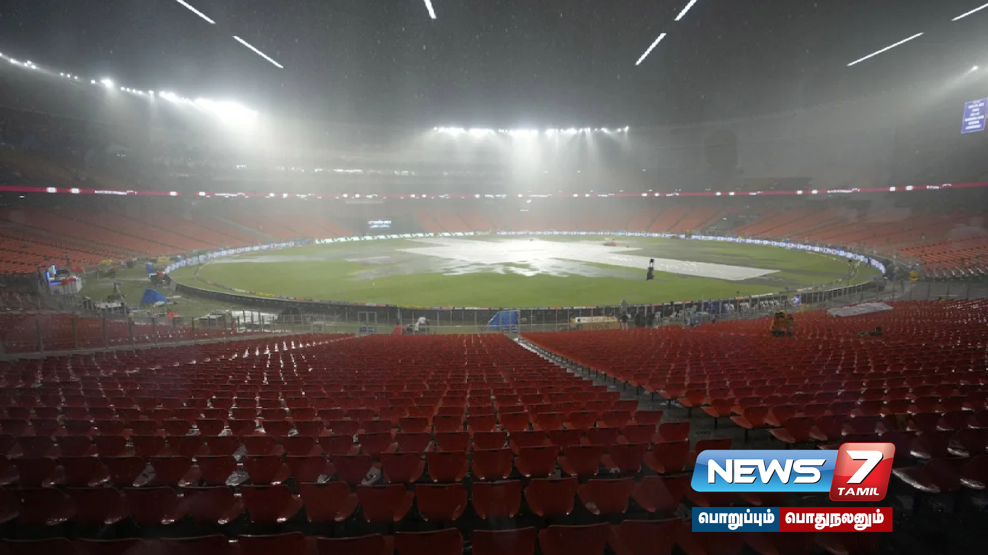 இதையடுத்து குஜராத் மாநிலம் அகமதாபாத்தில் நேற்று நடைபெற இருந்த இந்த போட்டி, மழை காரணமாக தொடங்குவதில் தாமதம் ஏற்பட்டது.
