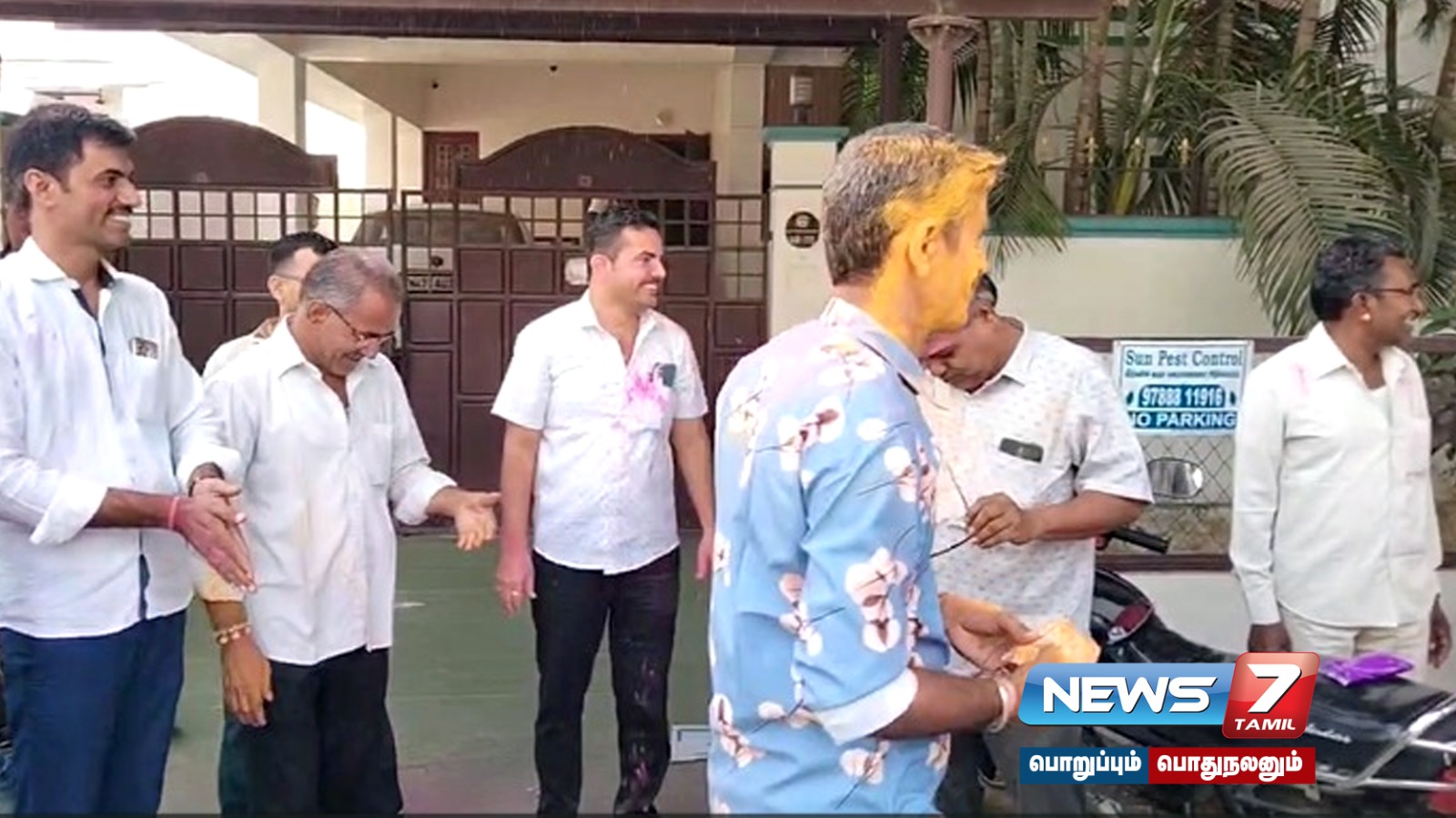 அந்த வகையில், ஹோலி பண்டிகையை முன்னிட்டு முருகனாதபுரம் பகுதியில் ராஜஸ்தான் மாநிலத்தை சார்ந்தவர்கள், இருபதுக்கும் மேற்பட்டோர் திரண்டு ஒருவருக்கு ஒருவர் வண்ணப் பொடிகளை தூவியும், பூசிக் கொண்டும் ஹோலி பண்டிகை கொண்டாடினர். மேலும், இனிப்புகளை வழங்கி வாழ்த்துகளை தெரிவித்து மகிழ்ந்தனர்.
