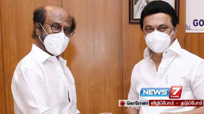 தலைமை செயலகத்தில் முதலமைச்சர் மு.க.ஸ்டாலினை இன்று பிற்பகல் நேரில் சந்தித்த நடிகர் ரஜினிகாந்த் ரூபாய் 50 லட்சம் கொரோனா நிதியுதவியை வழங்கினார்.