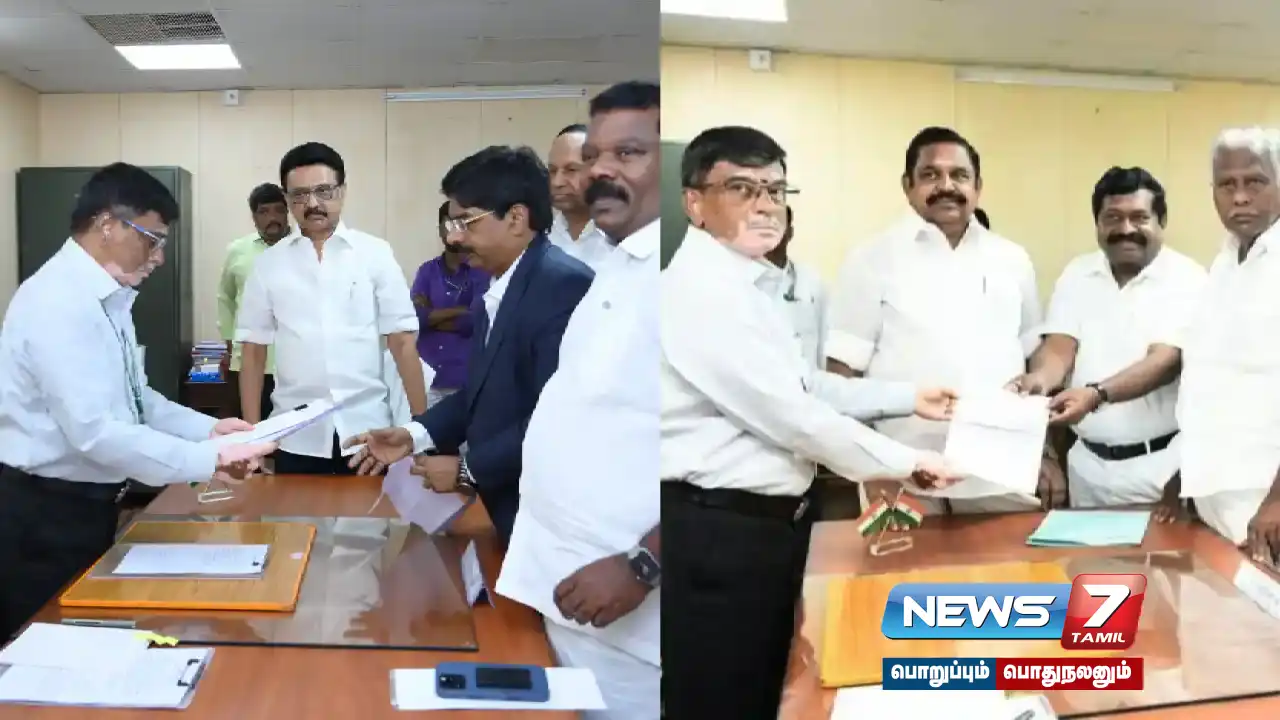 அதேபோல், அதிமுக வேட்பாளர்களான தனபால் மற்றும் ஐ.எஸ்.இன்பதுரை ஆகியோர் அக்கட்சியின் பொதுச்செயலாளர் எடப்பாடி பழனிசாமி முன்னிலையில் வேட்புமனு தாக்கல் செய்தனர். இந்த தேர்தலுக்கான வேட்புமனு தாக்கல் நேற்றுடன் நிறைவடைந்தது. இந்த நிலையில், வேட்புமனு பரிசீலனை இன்று நடைபெற்றது. இந்த தேர்தலில் திமுக சார்பில் போட்டியிடும் மக்கள் நீதி மய்யம் கட்சித் தலைவர் கமல்ஹாசன் தாக்கல் செய்த வேட்புமனு ஏற்றுக்கொள்ளப்பட்டது.