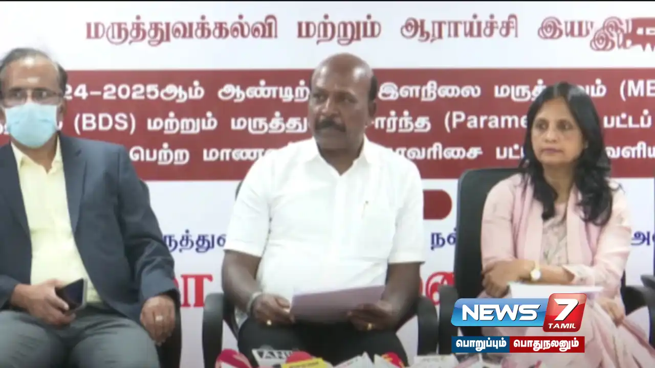 சென்னையில் மருத்துவப் படிப்புகளுக்கான தரவரிசைப் பட்டியலை மக்கள் நல்வாழ்வுத்துறை அமைச்சர் மா.சுப்பிரமணியன் இன்று வெளியிட்டார்.