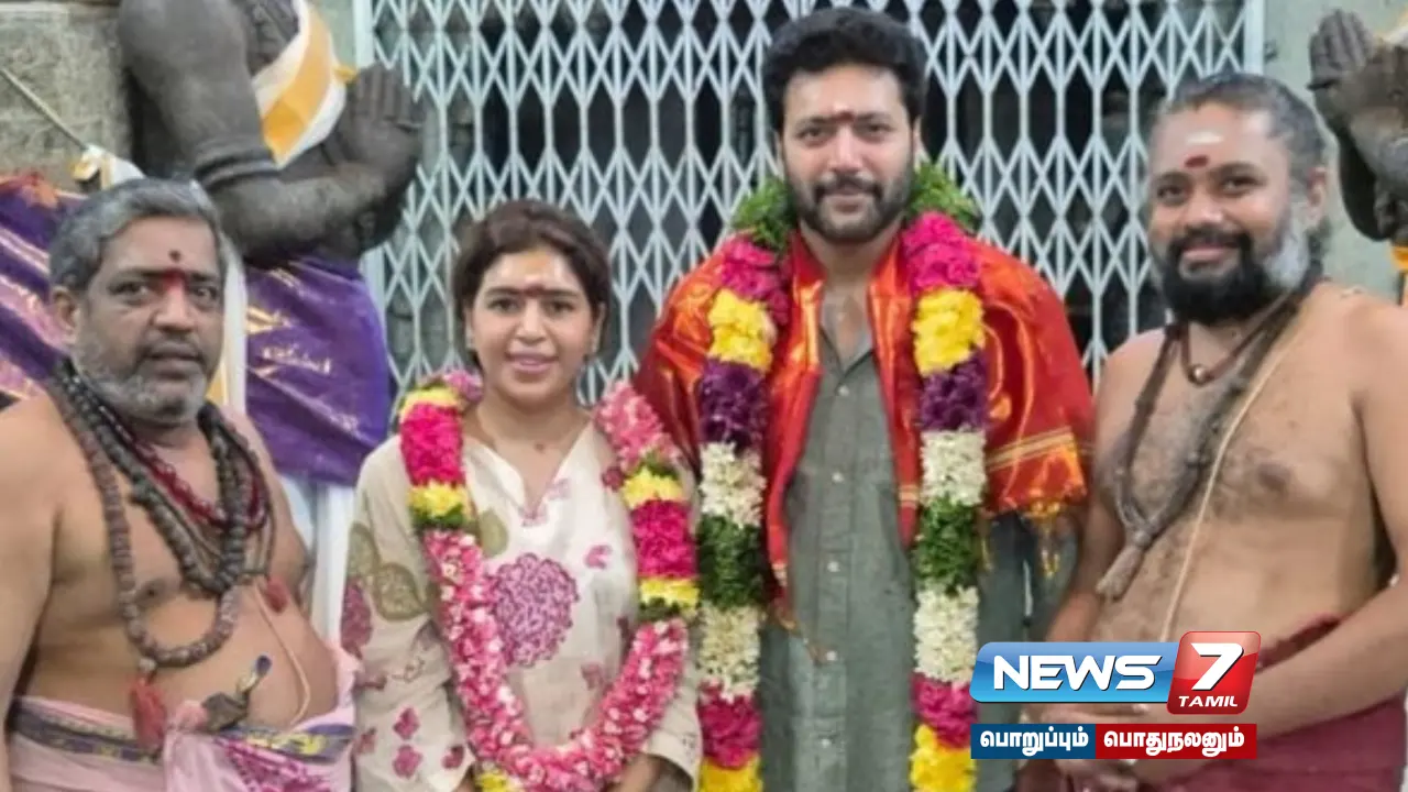 இந்த நிலையில் கோயிலில் ரவி மோகன், கெனிஷா ஆகியோர் மாலையும் கழுத்துமாக சென்னையில் உள்ள கோயிலில் வழிபட்டதுபோல் புகைப்படம் ஒன்று இணையத்தில் வைரலாகி வருகிறது. இது ரவி மோகன் தொடங்கியுள்ள தயாரிப்பு நிறுவனமான ரவி மோகன் ஸ்டுடியோவின் லோகோவை வெளியிடுவதற்கு முன்பு ஒன்றாக இணைந்து கோயிலுக்கு சென்று வழிபட்டதாக கூறப்படுகிறது.