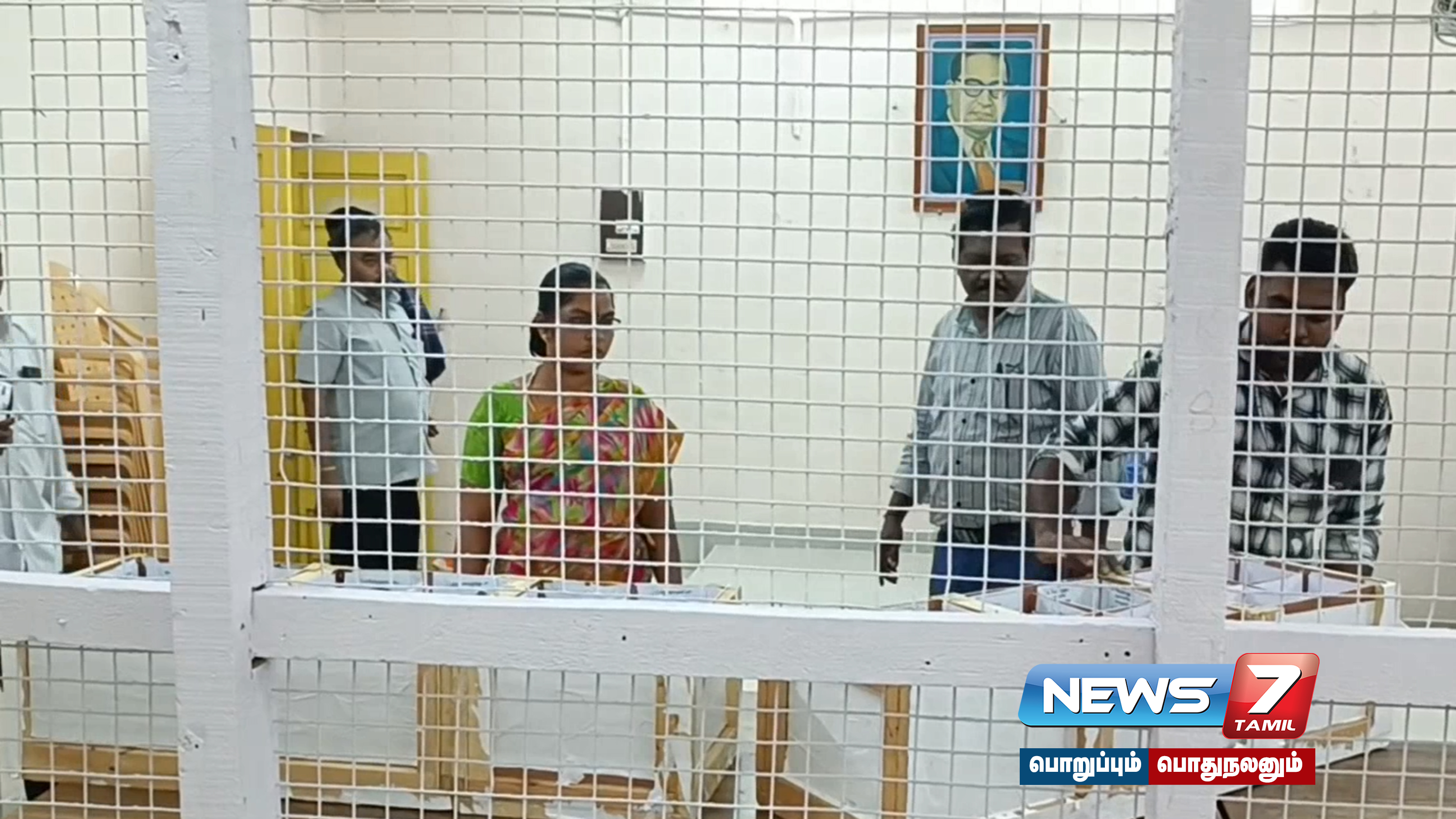 300-க்கும் மேற்பட்ட போலீசார் பாதுகாப்பு பணியில் ஈடுபட்டுள்ளனர். வாக்கு என்னும் மையத்திலிருந்து சுமார் 100 மீட்டர் தொலைவிற்கு தடுப்புகள் அமைக்கப்பட்டுள்ளது.