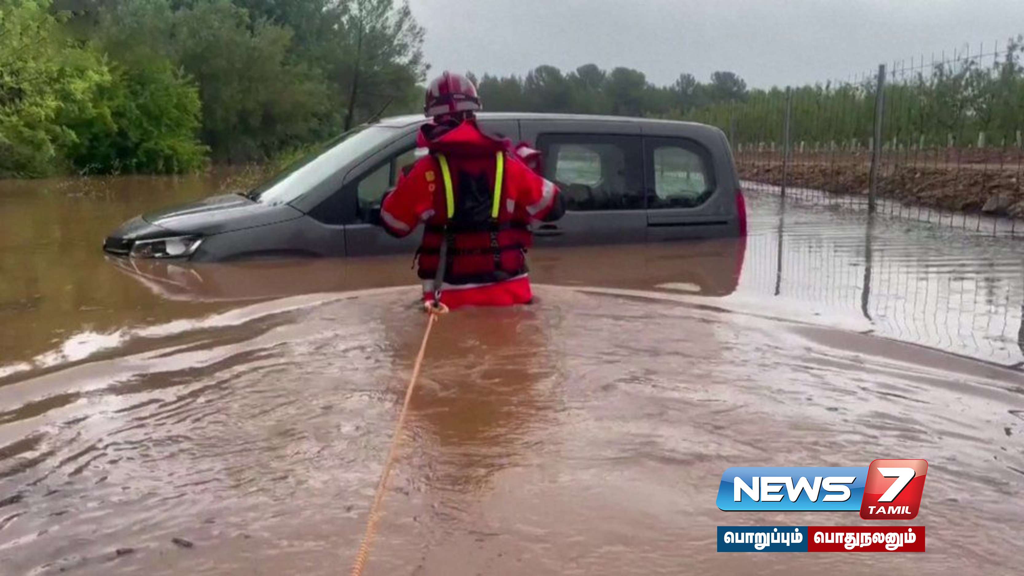 ஸ்பெயினில் வரலாறு காணாத மழைப்பொழிவால் குடியிருப்புகளை மழை வெள்ளம் சூழ்ந்தது.