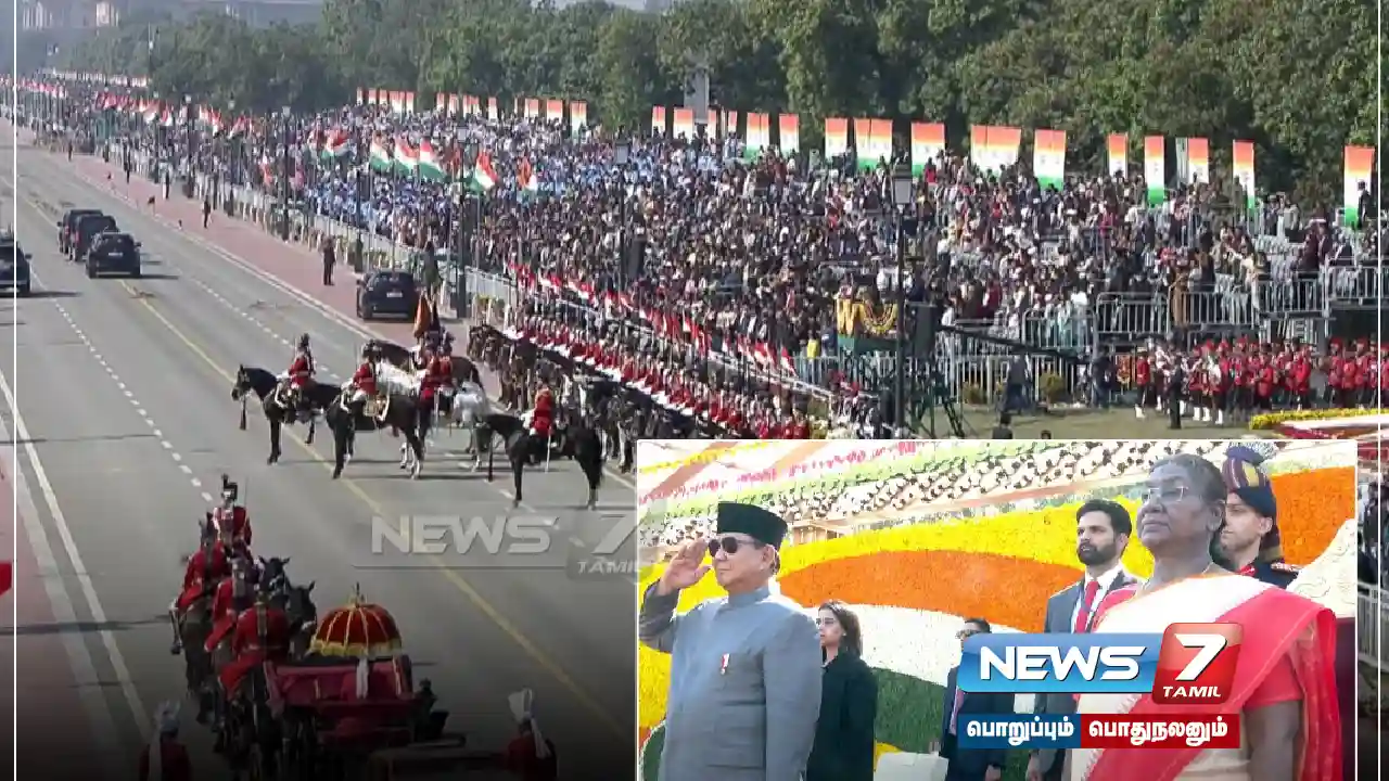 முன்னதாக இந்தோனேசிய அதிபர் பிரபோவோ சுபியந்தொ கடமைப்பாதைக்கு வந்த போது பிரதமர் மோடி முப்படை தளபதிகளை பிரதமர் மோடி அறிமுகம் செய்து வைத்தார். குடியரசு தினத்தையொட்டி கடமைப்பாதையில் கண்கவர் அணிவகுப்பு நடைபெற்றது.