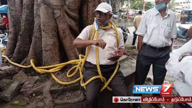 நாடெங்கும் சாலை விரிவாக்கத்திற்காக மரங்கள் வெட்டப்படுகின்றன. மரங்கள் வெட்டப் படுவதைத் தடுக்க வேண்டும் சமூக ஆர்வலர்கள் வலியுறுத்தி வருகின்றனர். இருந்தும் மரங்கள் வெட்டப்படுவது தொடர்ந்து கொண்டிருக்கிறது. இந்நிலையில், மரங்கள் வெட்டப் படுவதற்கு எதிர்ப்புத் தெரிவித்து, ஓய்வு பெற்ற வங்கி அதிகாரி ஒருவர் செய்த செயல் பரபரப்பை ஏற்படுத்தி இருக்கிறது.