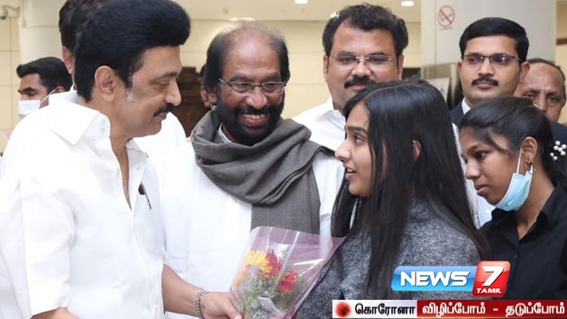 உக்ரைன் – ரஷ்யா போர் காரணமாக உக்ரைனில் இருந்து இறுதிக் கட்டமாக தமிழ்நாடு திரும்பிய 9 மாணவர்களை முதலமைச்சர் மு.க.ஸ்டாலின் பூங்கொத்து வழங்கி வரவேற்றார்.