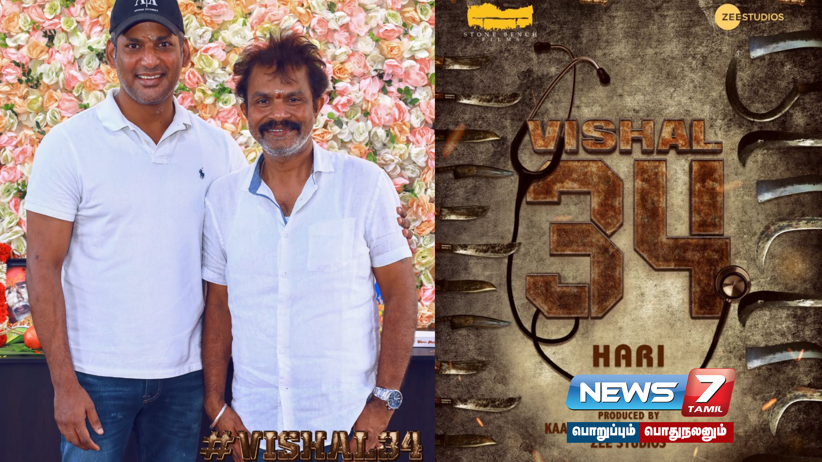 இதனையடுத்து, ஸ்டூடியோ கிரீன் நிறுவனம் தயாரிப்பில், இயக்குனர் பாண்டிராஜ் இயக்கத்தில், விஷால் நடிக்க உள்ளதாக தகவல் பரவி வந்த நிலையில் இன்று அதிரடி அறிவிப்பு ஒன்று வெளியாகியுள்ளது. அதன்படி நடிகர் விஷாலின் 34-வது படத்தை இயக்குனர் ஹரி இயக்க உள்ளதாக அதிகாரபூர்வ அறிவிப்பு இன்று வெளிவந்துள்ளது. ‘தாமிரபரணி’, ‘பூஜை’ படைஞலின் வெற்றி கூட்டணியான விஷால் மற்றும் இயக்குநர் ஹரியை மீண்டும் இணைத்து ஸ்டோன்பெஞ்ச் ஃபிலிம்ஸ் மற்றும் ஜீ ஸ்டுடியோஸ் சவுத் இணைந்து புதிய படத்தை தயாரிக்கிறது.