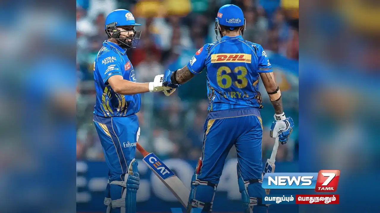 இதனையடுத்து 177 ரன்கள் அடித்தால் வெற்றி என்ற இலக்குடன் மும்பை அணி களமிறங்கியது. மும்பை அணியின் தொடக்க வீரர்களாக ரயான் ரிக்கெல்டன் – ரோகித் சர்மா களமிறங்கினர். இதில், ரயான் ரிக்கெல்டன் 24 ரன்களில் ஆட்டமிழந்தார். இதனையடுத்து சூர்யகுமார் யாதவுடன், ரோகித் சர்மா ஜோடி சேர்ந்தார். இவர்கள் இருவரும் இணைந்து ரன்களை குவித்தனர்.