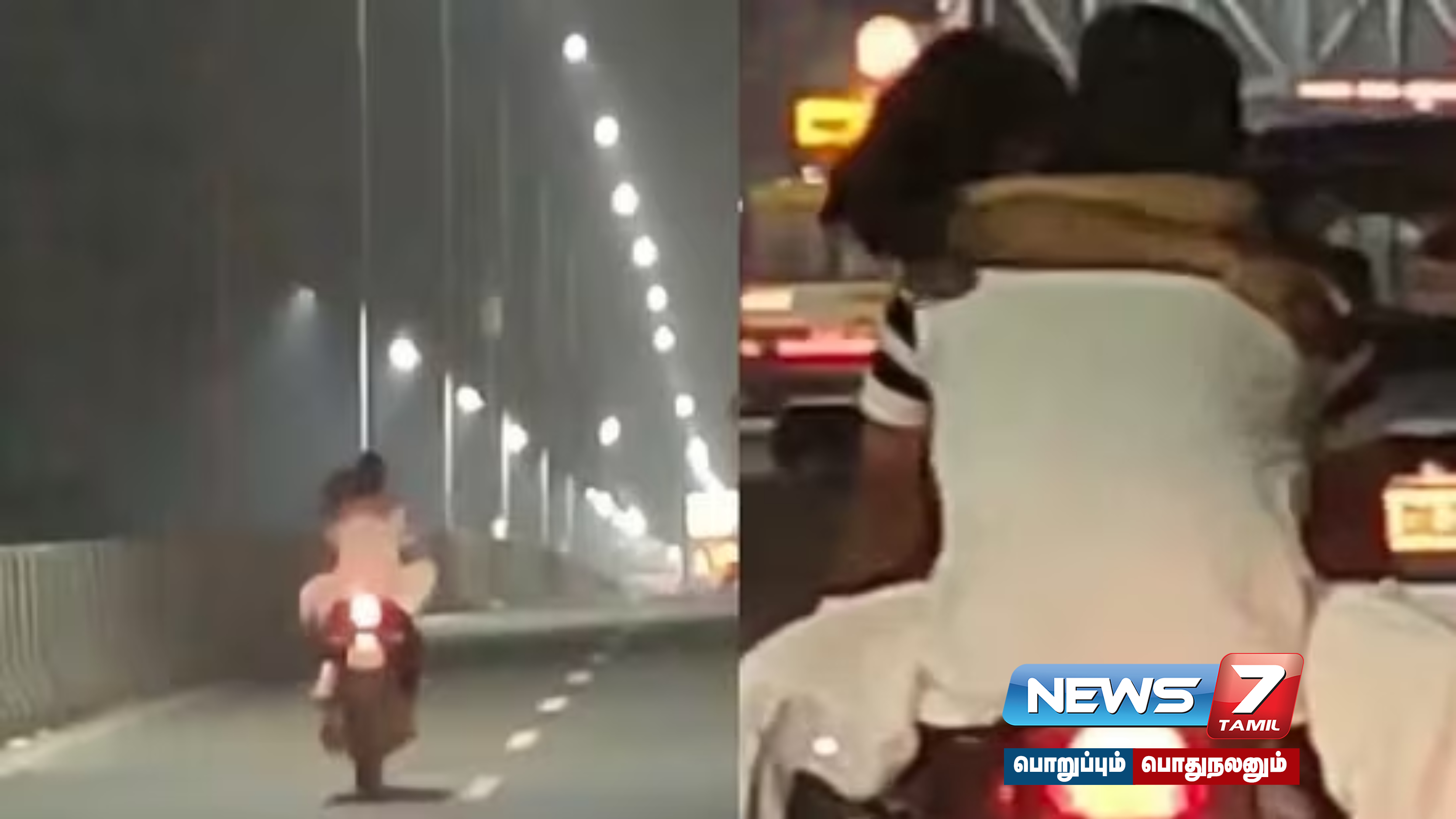 நெடுஞ்சாலையில், வாலிபரின் மடியில் அமர்ந்து ரொமான்ஸ் செய்துகொண்டே பைக்கில் செல்லும் காதல் ஜோடியின் வீடியோ தற்போது சமூக வலைதளங்களில் வைரலாக பரவி வருகிறது.