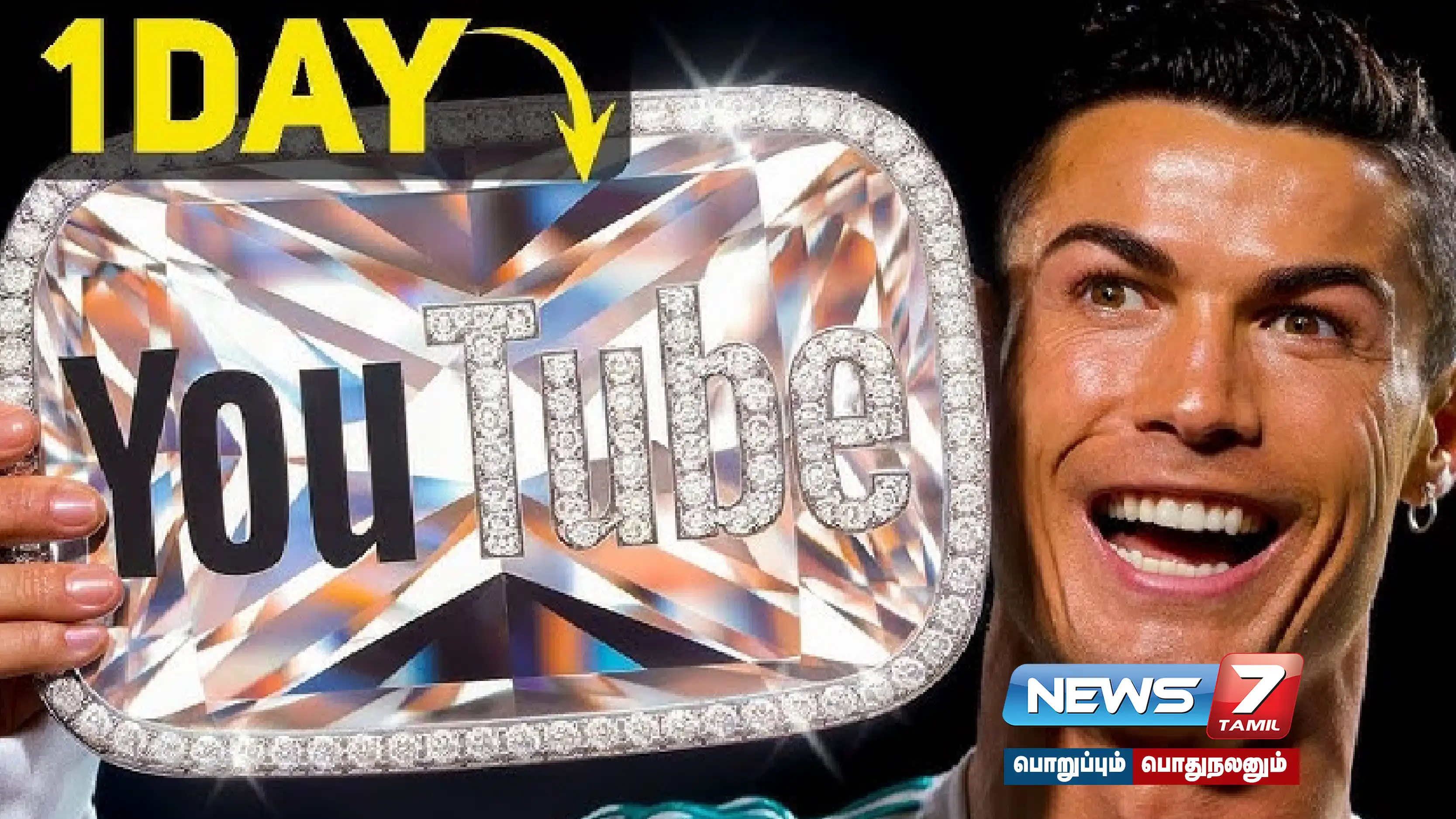 அதைத் தொடர்ந்து கோல்டன் பட்டன் இறுதியில் 1 கோடி சப்ஸ்கிரைபர்ஸ்களை பெறுவோருக்கு டைமண்ட் பட்டன் என யூடியூப் நிறுவனம் வழங்குகிறது. அந்த வகையில், ரொனால்டோ 22 நிமிடத்தில் சில்வர் பட்டனும், 90 நிமிடங்களில் கோல்டன் பட்டனும், 12 மணி நேரத்தில் டைமண்ட் பட்டனும் பெற்றுள்ளார்.