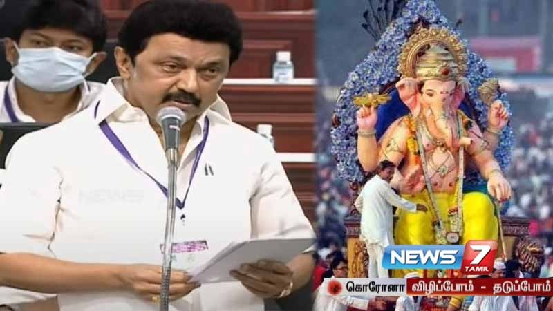 இதற்கு பதிலளித்து பேசிய முதலமைச்சர் மு.க.ஸ்டாலின், பொது இடங்களில் விநாயகர் சதுர்த்தி கொண்டாட மட்டுமே அரசு கட்டுப்பாடு விதித்துள்ளதாகவும், இல்லங்களில் பாதுகாப்பு வழிமுறைகளை கடைப்பிடித்து கொண்டாடலாம் என்றும், விளக்கம் அளித்தார்.