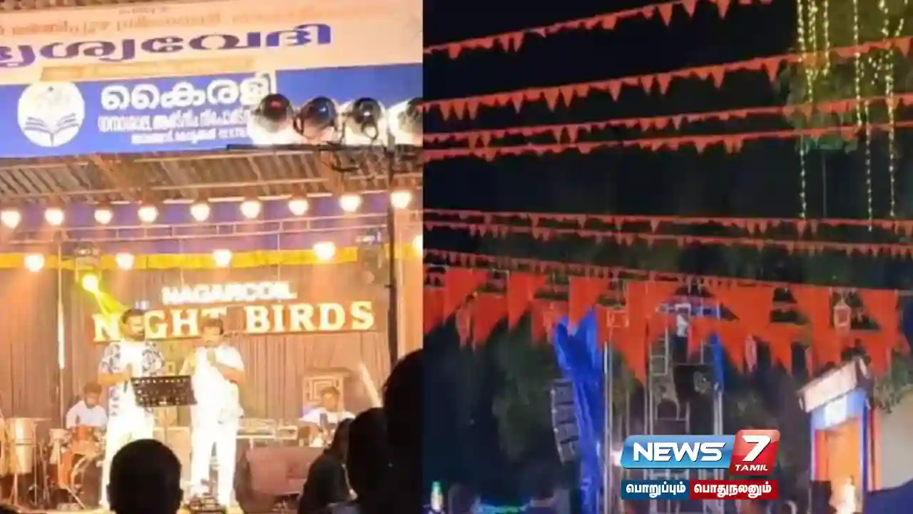 கொட்டுக்கலில் உள்ள கோயிலில் ஏற்பாடு செய்யப்பட்ட இசை விழாவில் ஆர்.எஸ்.எஸ்.இன் நேற்று (ஞாயிற்றுக்கிழமை) காலை ஏற்பாடு செய்யப்பட்ட ‘கான மேளா’ (இசை கச்சேரி) நிகழ்ச்சியின் போது, தொழில்முறை இசைக் குழுவினர்களால் ஆர்எஸ்எஸ் பாடல் இசைக்கப்பட்டுள்ளது. சர்ச்சை எழுந்த நிலையில் காங்கிரஸ் உள்ளிட்ட கட்சிகள் குற்றம்சாட்டியதை தொடர்ந்து இதுதொடர்பாக வழக்குப்பதிவு விசாரணை செய்து வருவதாக போலீசார் தெரிவித்துள்ளனர். மேலும் காவல்துறையினரின் கூற்றுப்படி, திருவிழாவையொட்டி கோயில் வளாகத்தில் ஆர்எஸ்எஸ் கொடிகள் வைக்கப்பட்டதாகவும் கூறப்படுகிறது.