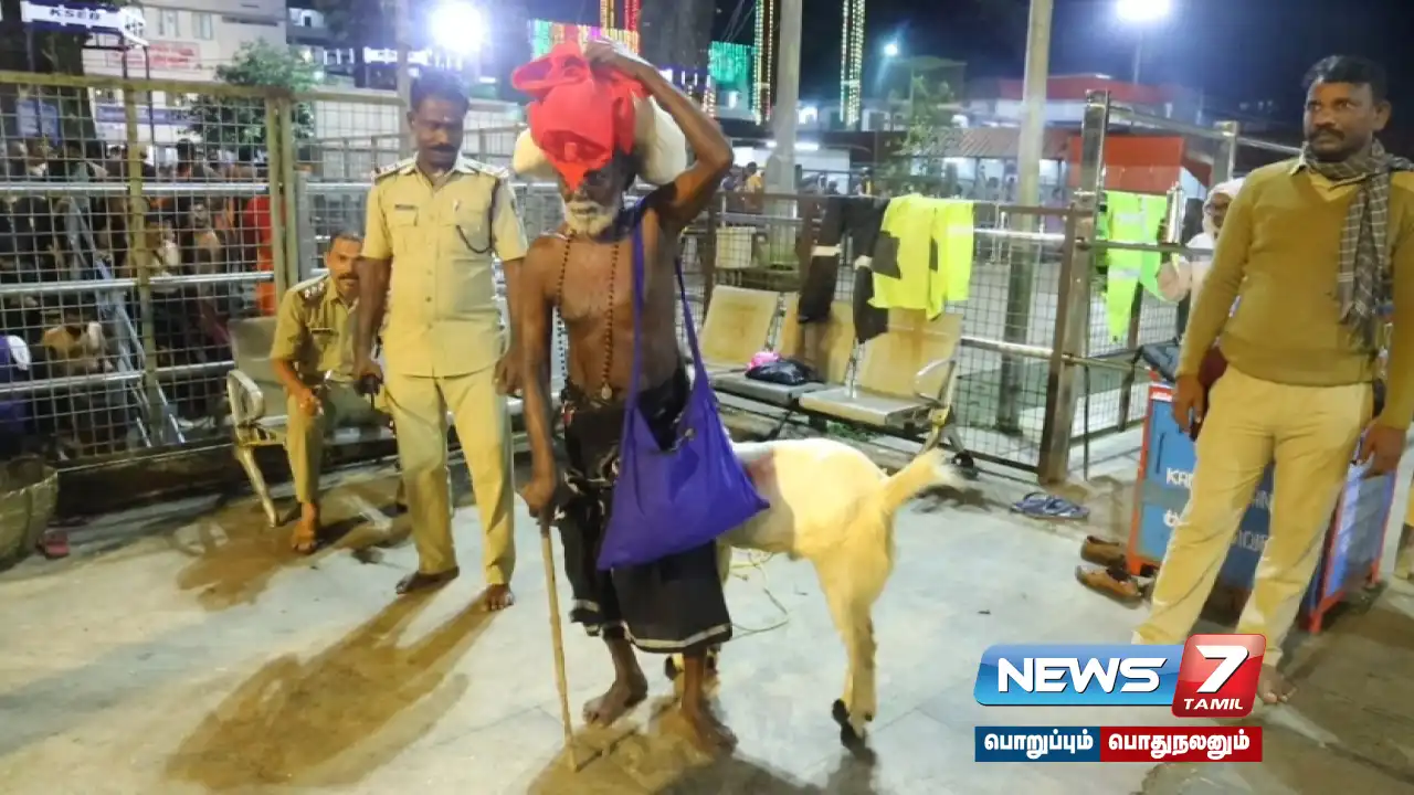 இதற்காக தான் கொண்டு வந்த ஆட்டுடன் கானபாதை வழியாக கடந்து வந்து அனைவரையும் நெகிழ வைத்தார். தொடர்ந்து ஆட்டுடன் சபரிமலை சன்னிதானம் வந்த அவர் அங்கு 18-ம் படிக்கு கீழே ஆட்டை கட்டிவிட்டு, இருமுடியுடன் 18-ம் படி ஏறி சாமி தரிசனம் செய்தார். வேல்சாமி திரும்பி வரும்வரை ஆட்டிற்கு போலீசார் பாதுகாப்பாக நின்றிருந்த சம்பவம் காண்போரை நெகிழ்ச்சி அடைய செய்தது.