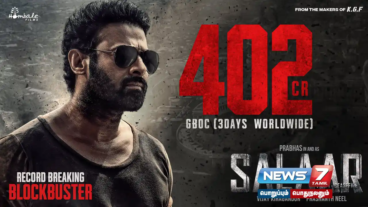 இதனை தொடர்ந்து சலார் திரைப்படத்தின் அதிகாரபூர்வ அறிவிப்புகள் வெளியாகி அனைவரையும் ஆச்சர்யத்தில் ஆழ்த்தி வருகிறது. இதன்படி, முதல்நாளில் சலார் ரூ.178.7 கோடி வசூலித்து அசத்தியுள்ளது. 2023ஆம் ஆண்டில் வெளியான படங்களிலேயே இதுதான் முதலிடம் என்பதும் குறிப்பிடத்தக்கது. 2வது நாளில் ரூ.295.7 கோடியும் வசூலானது. தற்போது 3வது நாலில் ரூ.402 கோடி வரை வசூலித்துள்ளதாக படக்குழு அறிவித்துள்ளது.