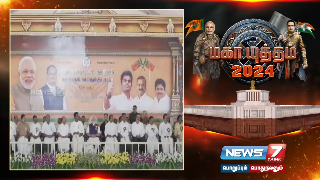 சேலம் பொதுக்கூட்டத்தில் ஒரே மேடையில் பாஜக கூட்டணிக் கட்சித் தலைவர்கள் கலந்து கொண்டனர்.