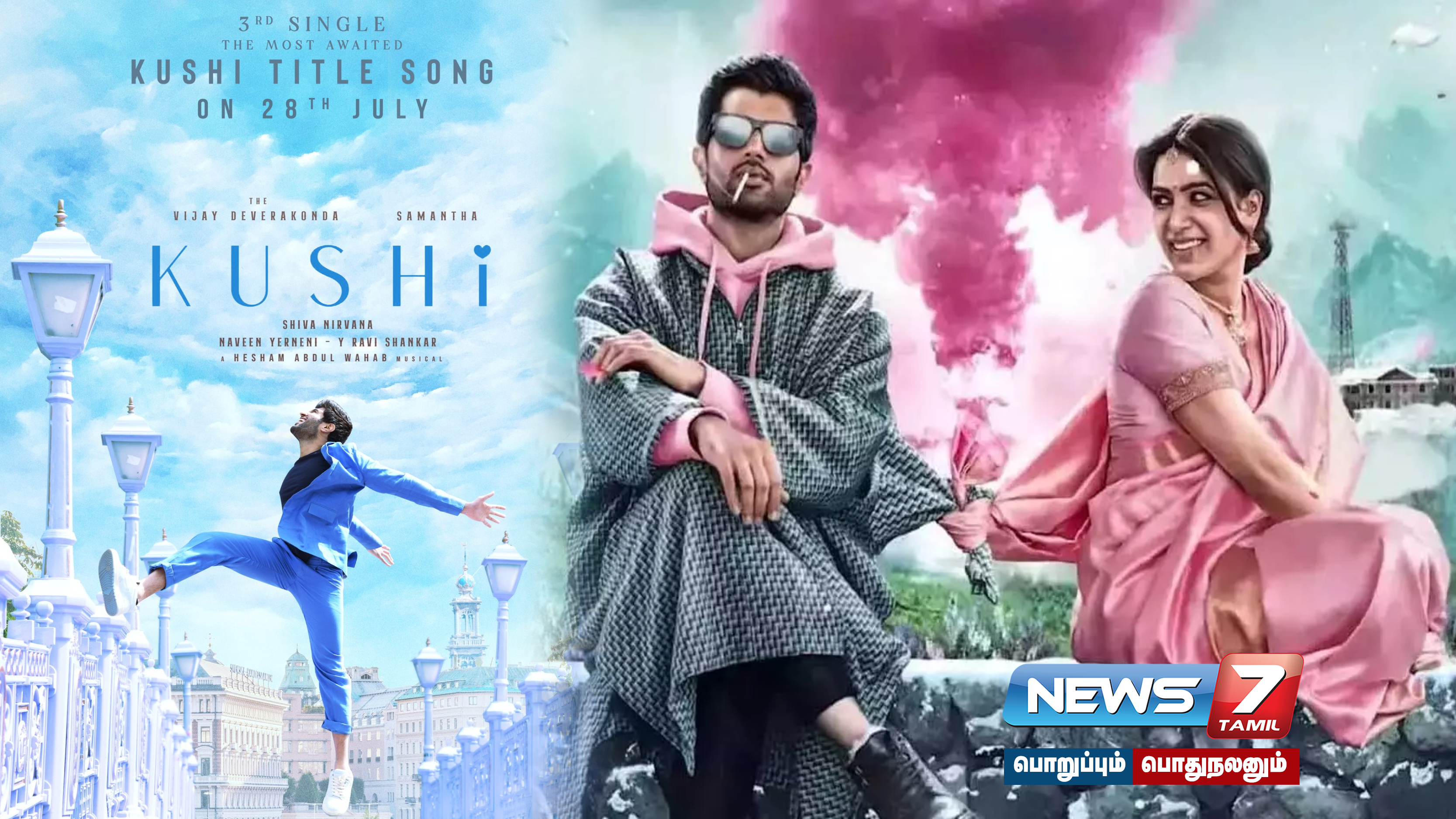 நடிகை சமந்தா, விஜய் தேவரகொண்டா நடிப்பில் உருவாகிவரும் “குஷி” படத்தின் டைட்டில் பாடல் வரும் ஜூலை 28-ம் தேதி வெளியாக உள்ளது.