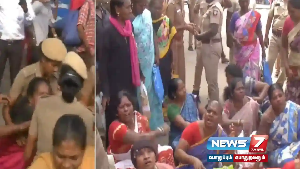 தொடர்ந்து நிரந்தர பணி நியமன அறிவிப்பு வரும் வரை முற்றுகை போராட்டத்தில் ஈடுபடுவோம் என தூய்மை பணியாளர்கள் தெரிவித்துள்ளனர். இந்த நிலையில் தலைமைச் செயலகத்தை முற்றுகையிட வந்த தூய்மை பணியாளர்களை போலீசார் கைது செய்துள்ளனர். போராட்டத்தில் ஈடுபடுவதற்கு முன்பாகவே தூய்மை பணியாளர்களை வலுக்கட்டாயமாக காவல் துறையினர் கைது செய்து வருகின்றனர். இதனால் அப்பகுதியில் பெரும் பரபரப்பு ஏற்பட்டுள்ளது. இதனை தொடர்ந்து தூய்மை பணியாளர்கள் சாலையில் அமர்ந்து மறியலில் ஈடுபட்டுள்ளனர்.