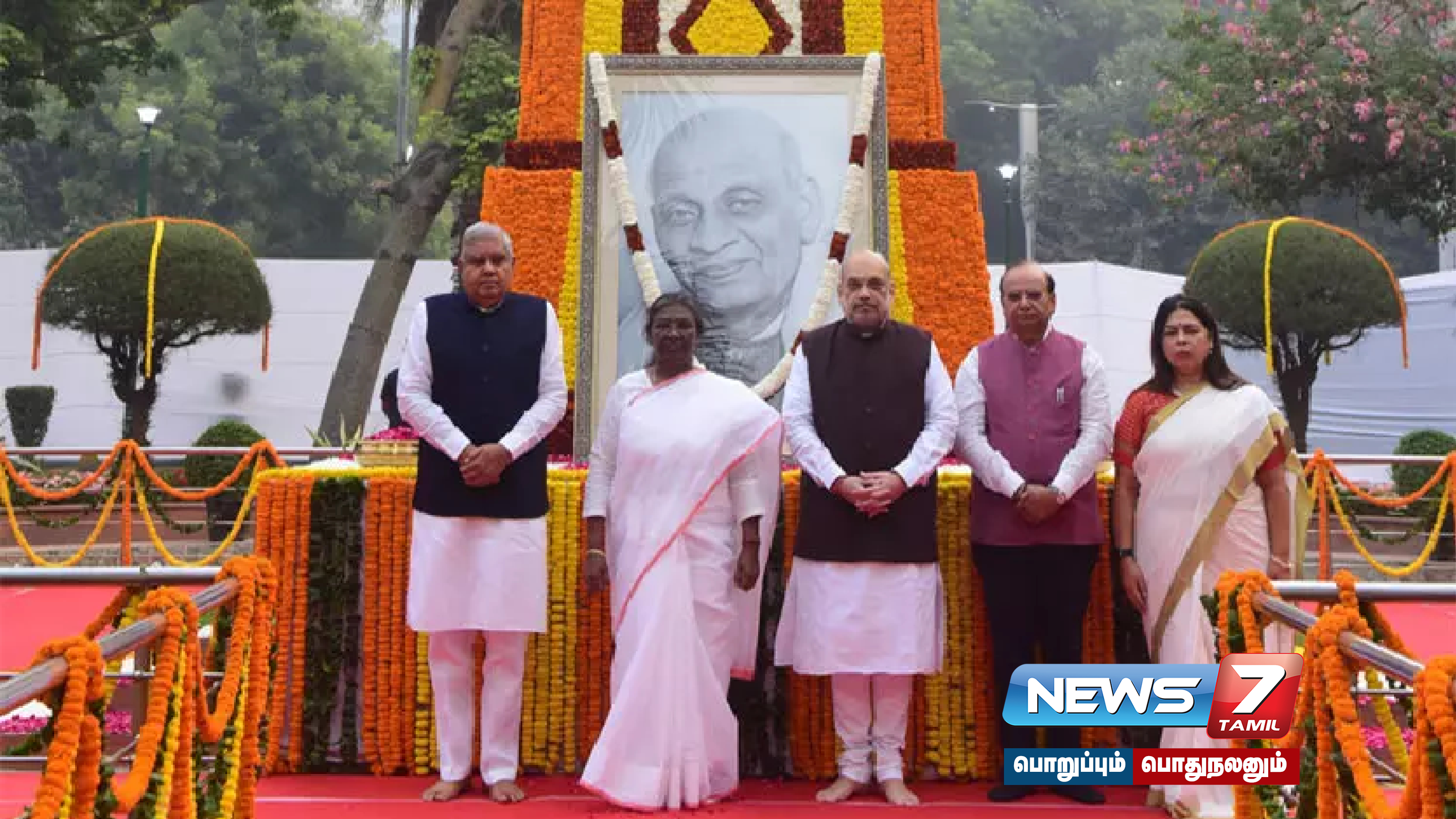சர்தார் வல்லபாய் படேல் பிறந்த நாளை முன்னிட்டு அவரது உருவப்படத்திற்கு குடியரசு தலைவர் திரௌபதி முர்மு, துணை குடியரசு தலைவர் ஜெகதீப் தங்கர் உள்ளிட்டோர் மலர்துவி மரியாதை செலுத்தினர்.
