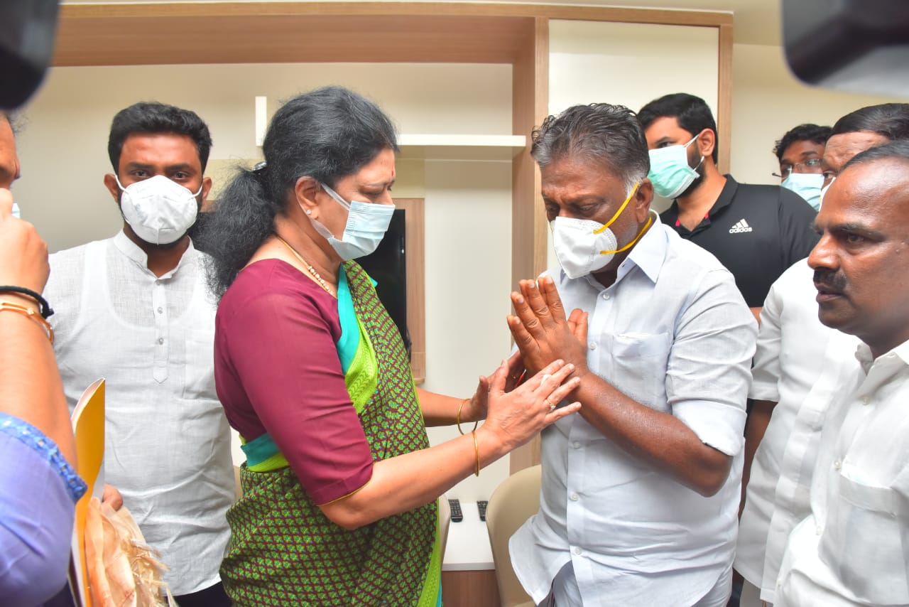 ஓபிஎஸ் மனைவி மறைவுக்கு சசிகலா நேரில் சென்று ஆறுதல் தெரிவித்தார்.